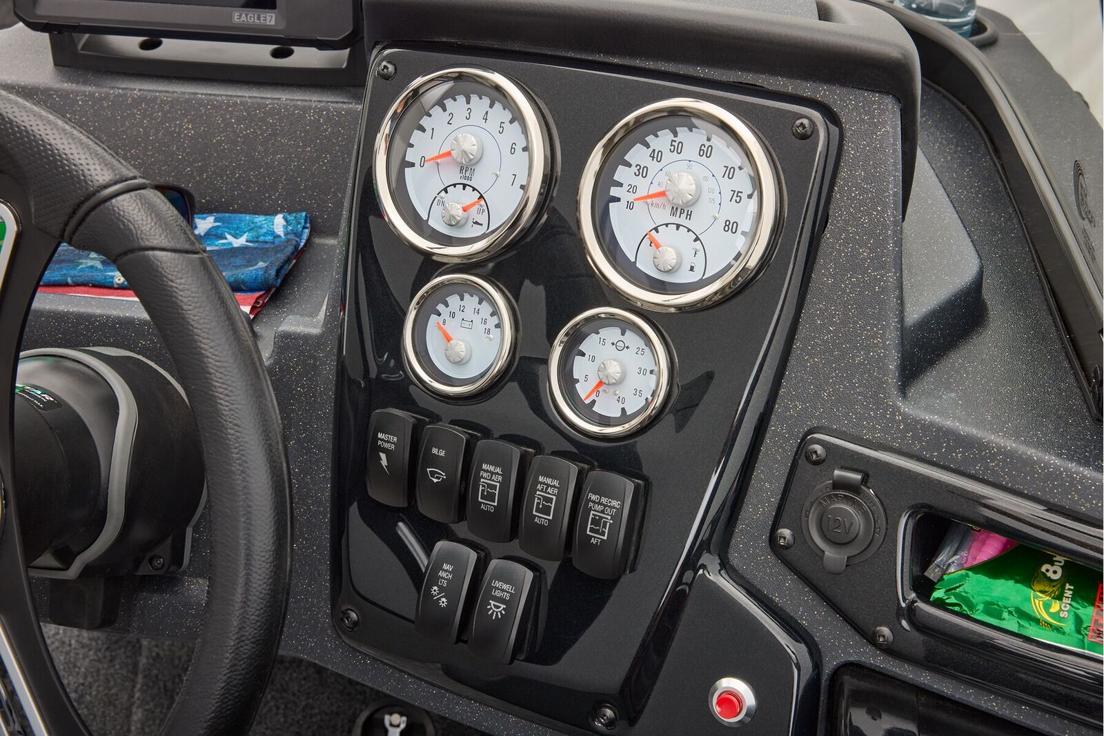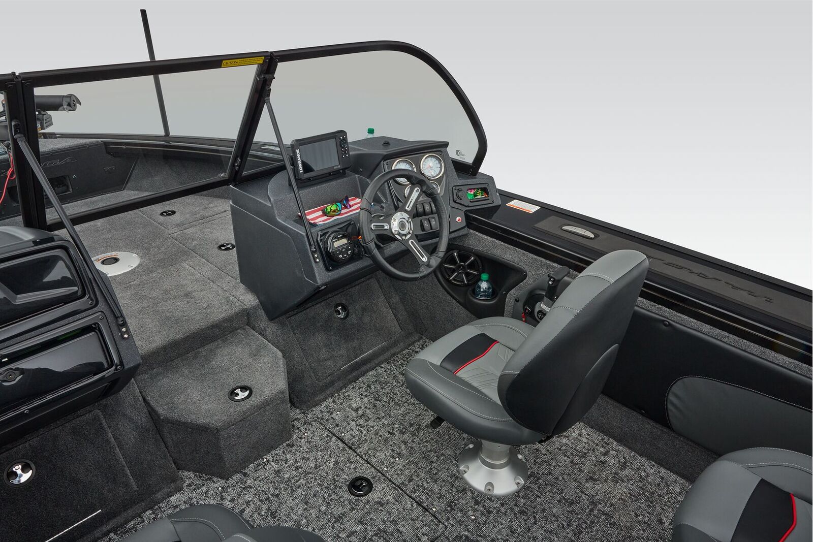 Step aboard and you'll find yourself surrounded by premium features designed to enhance your fishing experience. The Lowrance® GPS system ensures that you never lose your way, while the fuel level gauge keeps you informed about your tank's status at all times.