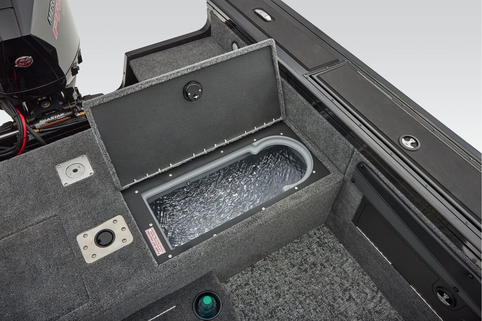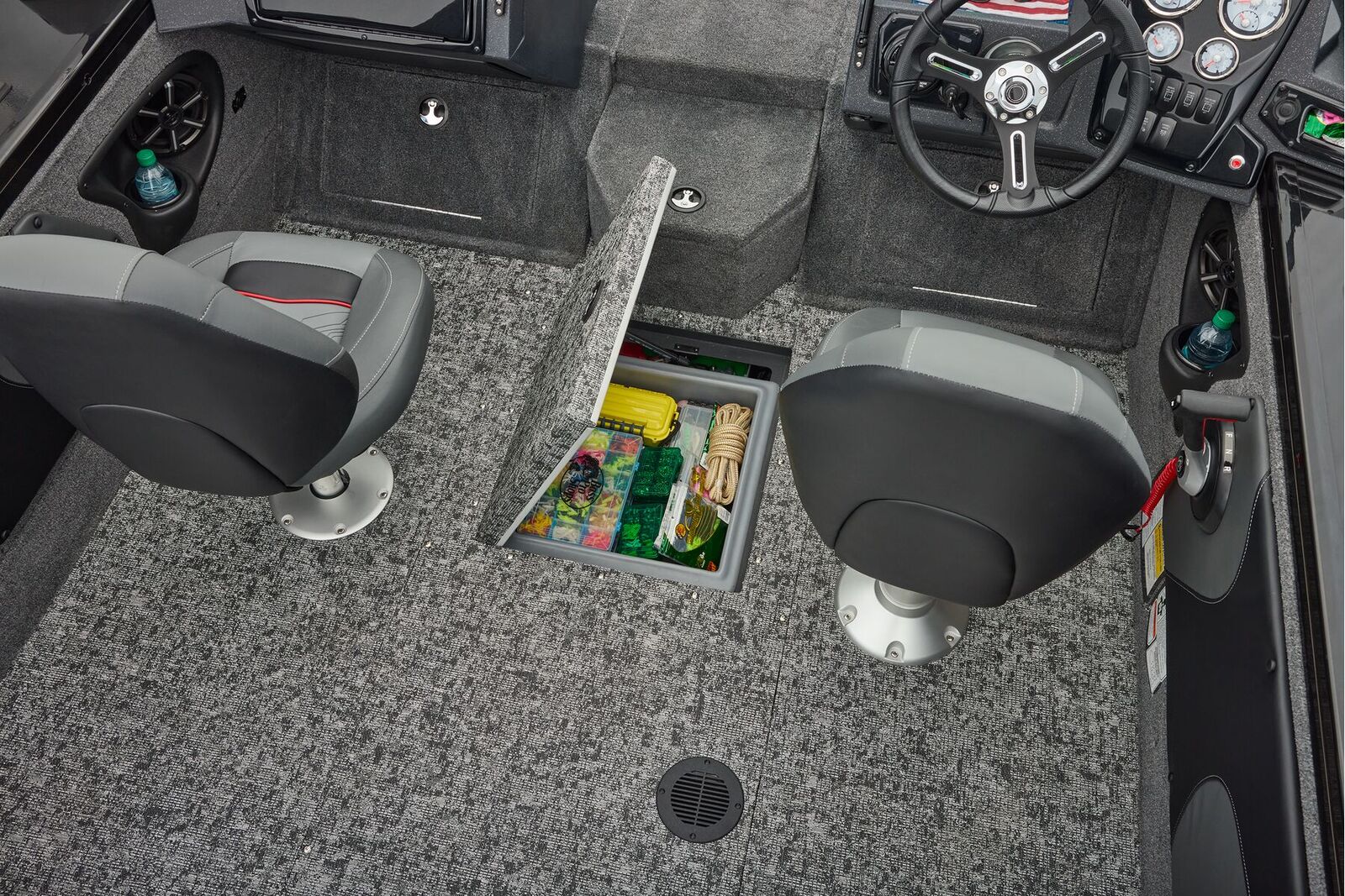Relax in style on the vinyl cockpit flooring and enjoy the company of your friends on the three cockpit chairs. With three fishing pedestal chairs and a total baitwell capacity of 30 gallons, this vessel is ready to help you reel in the big catch of the day.