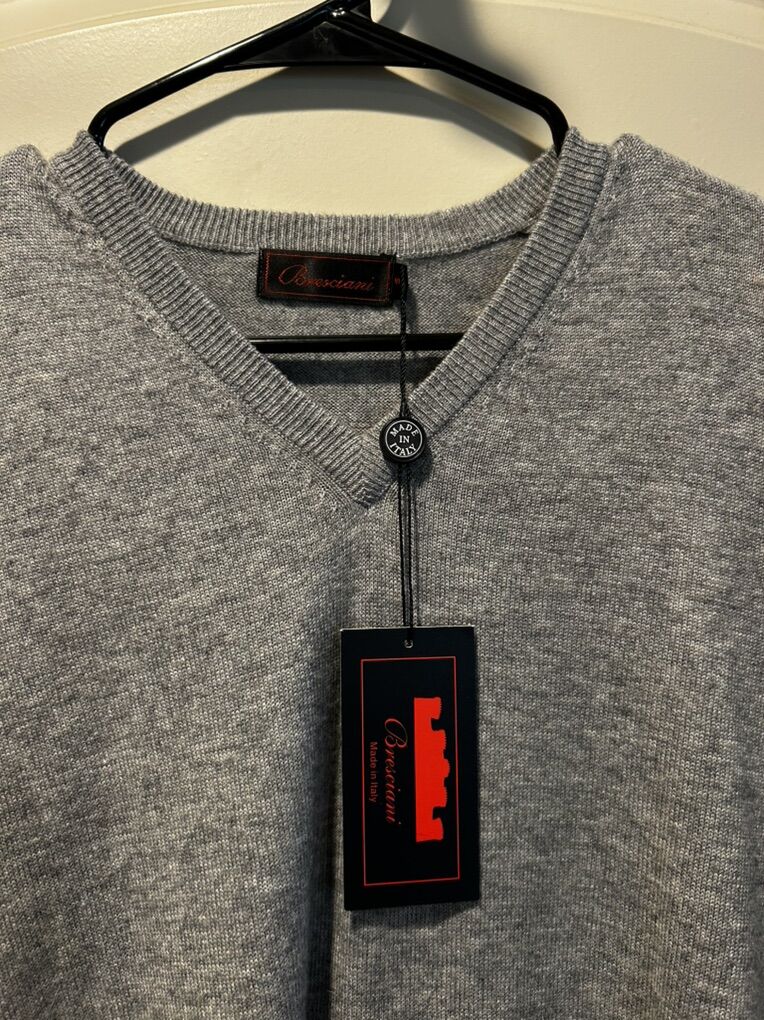 VenmoNew tags men’s size small cashmere and Marino wool long sleeve gray V-neck sweater. Made in and purchased from Italy. This is a beautiful high-quality high-end luxury item. Clean smoke free. Cash or Venmo. Pick up in Alpine.