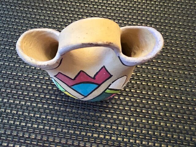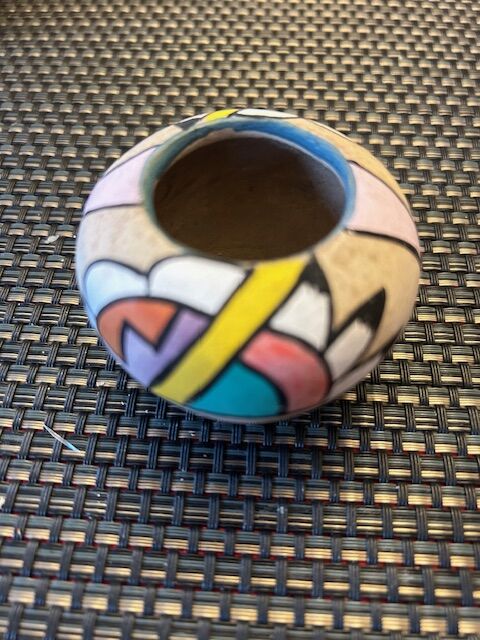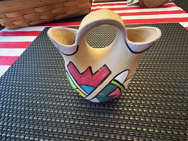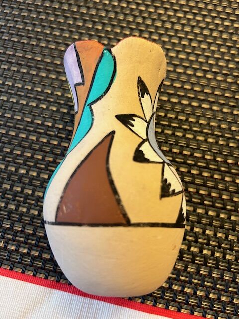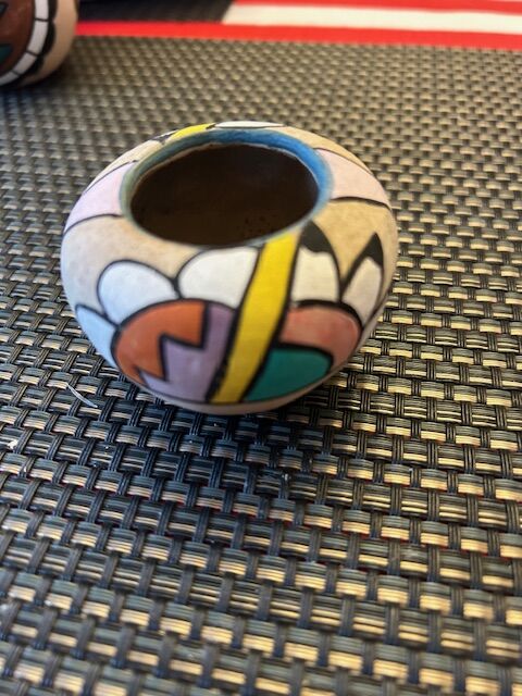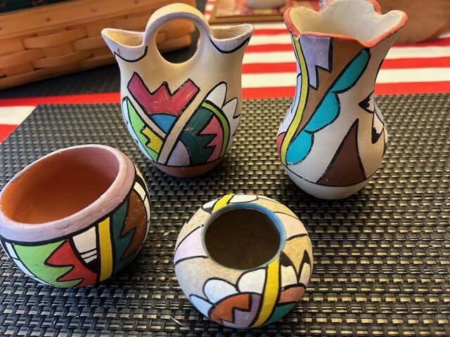 This is a RARE beautiful Vintage Set of 4 Pueblo or Navajo Pottery Miniatures including a wedding vase, 2 Pots and a vase - lovely hand painted Native American Art purchased in Arizona in the 70s - wedding vase is 4.5 tall, vase is almost 5 tall, 1 pot is 2.25 tall and 2.5 in diameter, the second pot is 1.75 tall and the top opening is 1.5 in diameter - please check photos carefully before purchase since we are not professionals regarding this type of piece. These were purchased from a roadside vendor in the 70s and we are selling them to raise funds for humanitarian work. $10 each or $40 for the set of 4. Cash at Pick up in Highland, UT.