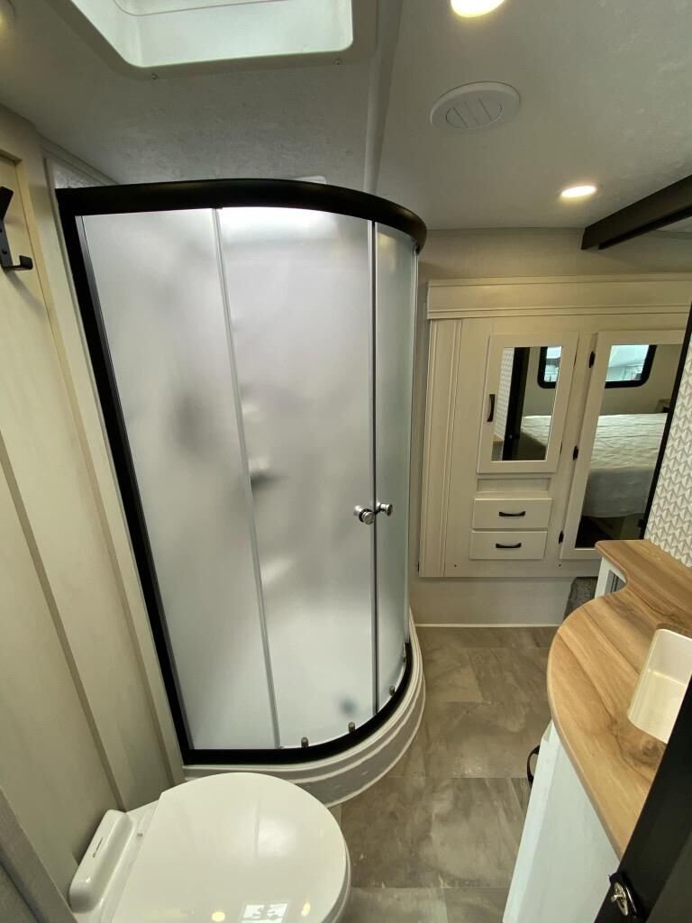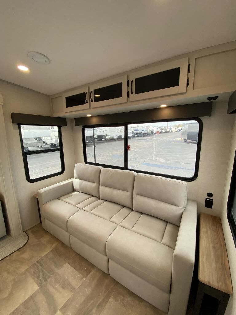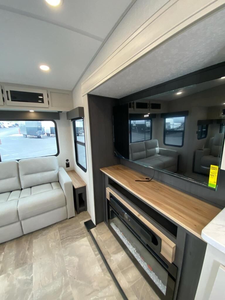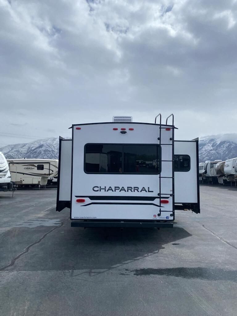 Each Chaparral mid-profile fifth wheel by Coachmen is designed with residential features, loads of storage space, and roomy bedroom suites to make you feel right at home. The durable construction means you can enjoy your RV for years to come. There's 6X double Azdel aluminum cage sidewall system, Weather Shield+ technology, and Tri-Tex powder coated frame technology that will allow you to camp year around. Each model includes a Winegard Air 360+ HDTV/radio dome antenna to help keep you connected as you camp, slow rise blackout roller night shades, a new 16 cu. ft. side-by-side stainless glass 12V refrigerator, and a modern electric fireplace to make your space cozy. There is also a large transom window in the kitchen, a modern high-rise faucet, LED motion sensor lights in the bathroom, plus a full-size shower with glass doors and a seat. Now that's what I call luxury! Choose a Chaparral fifth wheel today!