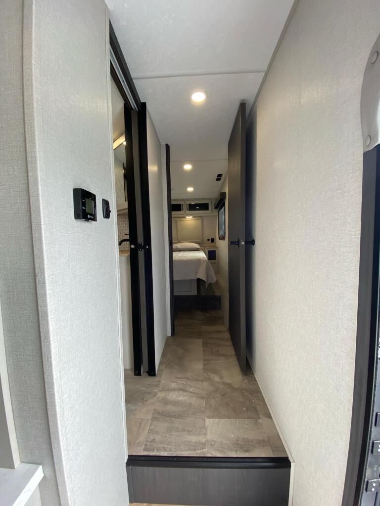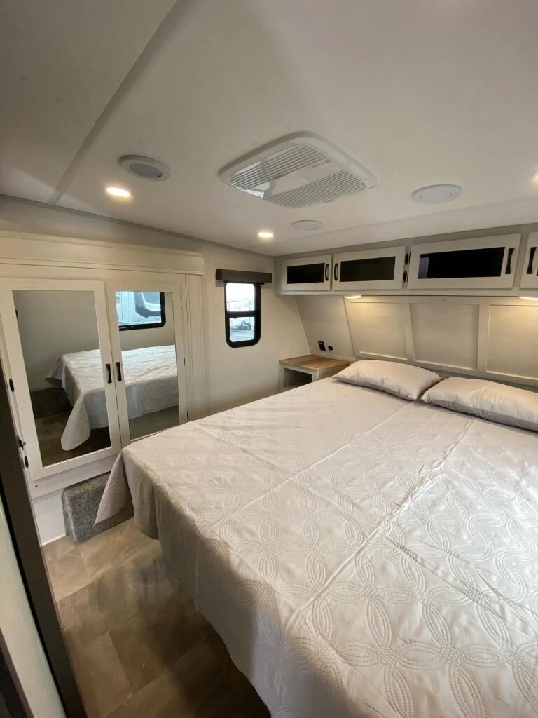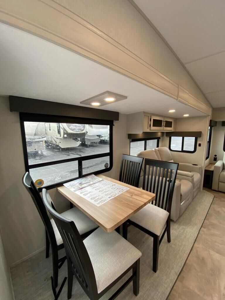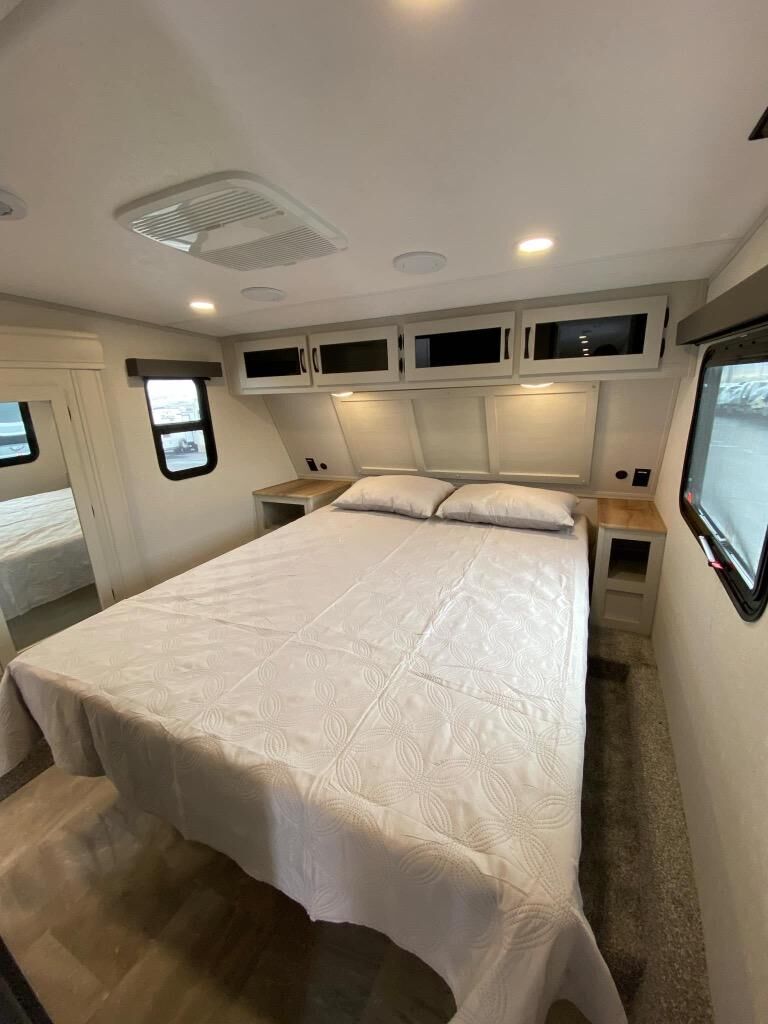 Each Chaparral mid-profile fifth wheel by Coachmen is designed with residential features, loads of storage space, and roomy bedroom suites to make you feel right at home. The durable construction means you can enjoy your RV for years to come. There's 6X double Azdel aluminum cage sidewall system, Weather Shield+ technology, and Tri-Tex powder coated frame technology that will allow you to camp year around. Each model includes a Winegard Air 360+ HDTV/radio dome antenna to help keep you connected as you camp, slow rise blackout roller night shades, a new 16 cu. ft. side-by-side stainless glass 12V refrigerator, and a modern electric fireplace to make your space cozy. There is also a large transom window in the kitchen, a modern high-rise faucet, LED motion sensor lights in the bathroom, plus a full-size shower with glass doors and a seat. Now that's what I call luxury! Choose a Chaparral fifth wheel today!