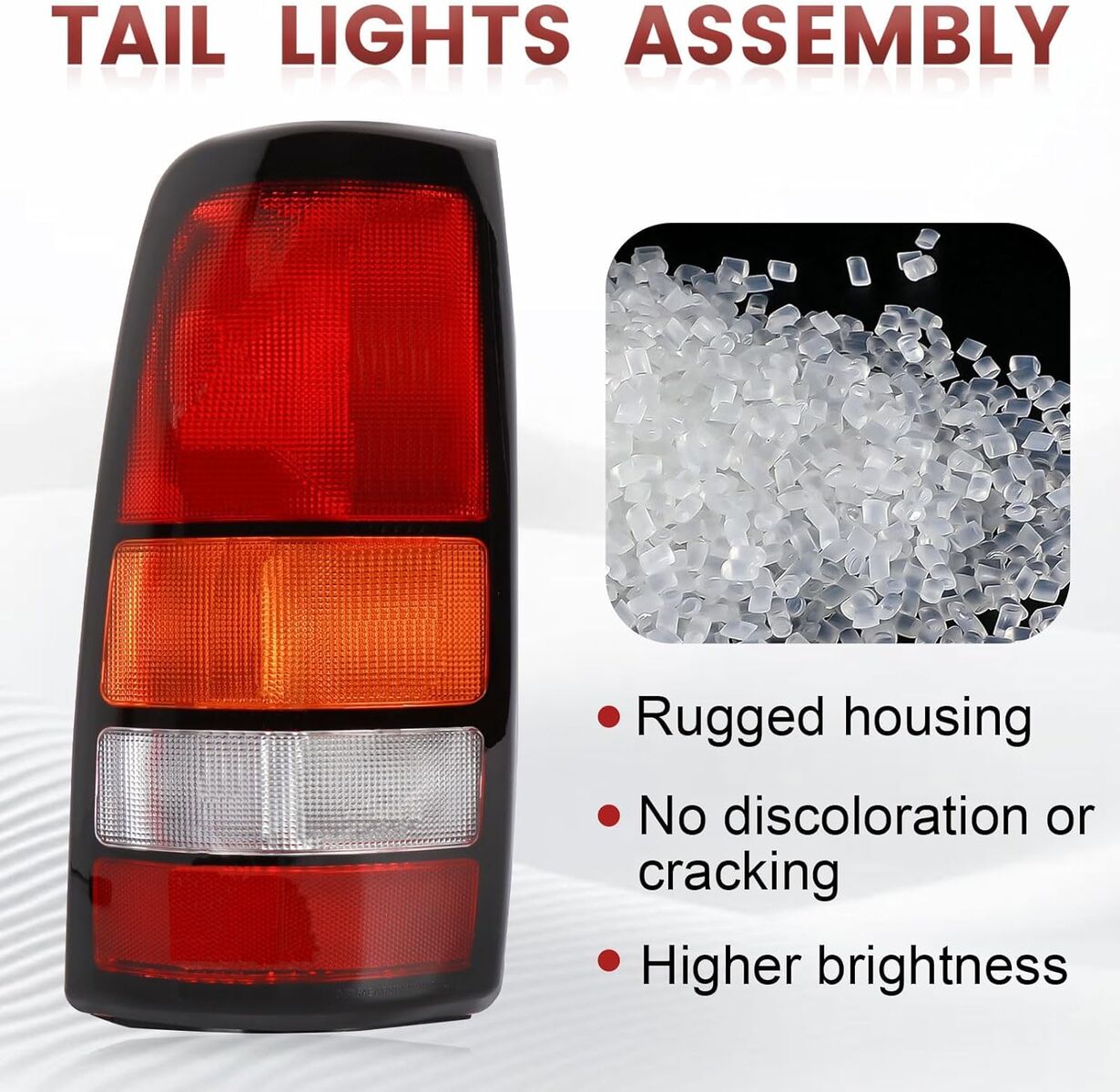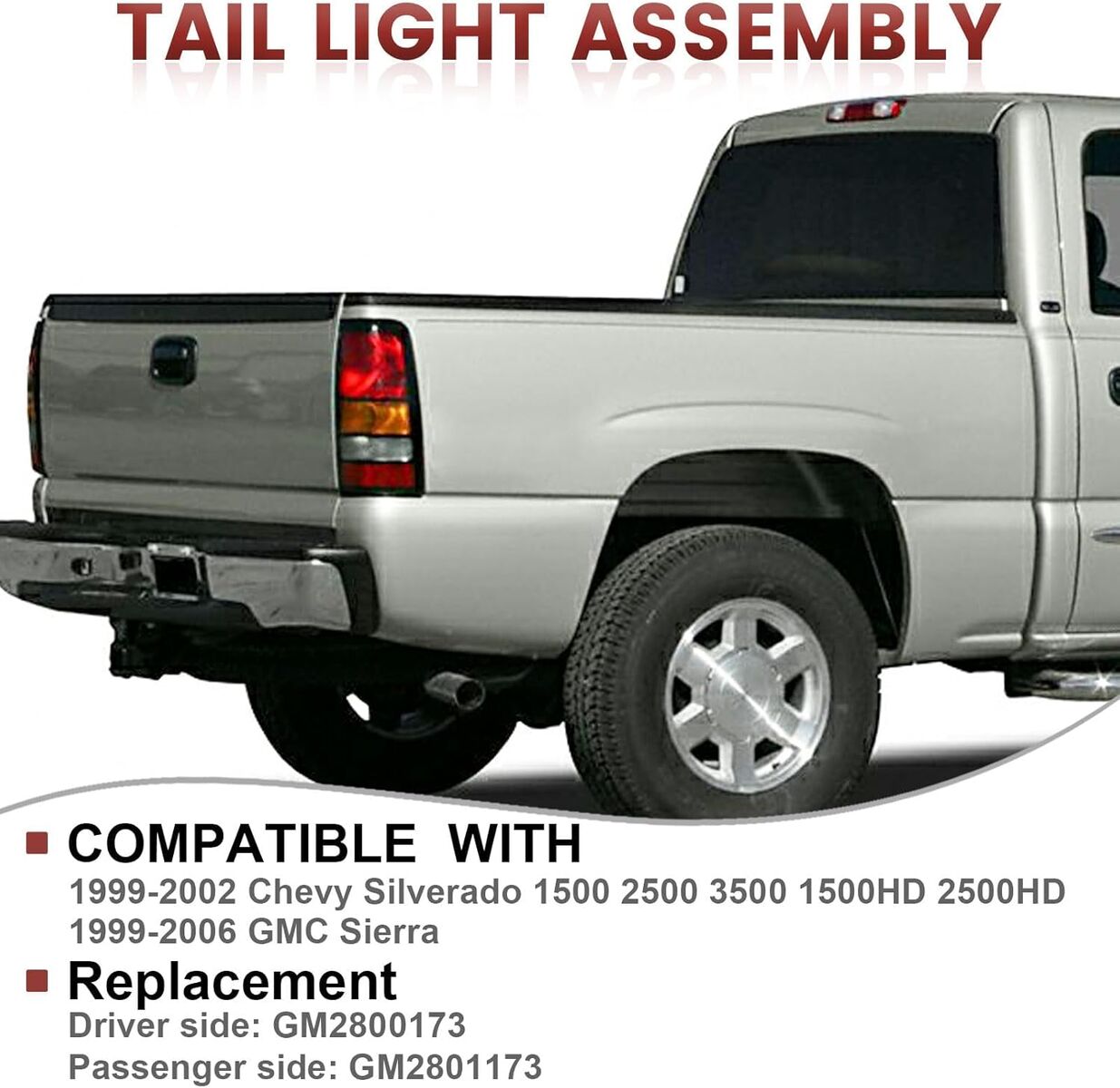 About this item - Fitment:Tail lights assembly compatible with 1999-2002 Chevy Silverado 1500 2500 3500 1500HD 2500HD,1999-2006 GMC Sierra ,replacement:GM2800186 GM2801186 15198453 15198460.Please see the details page for specific models