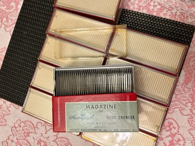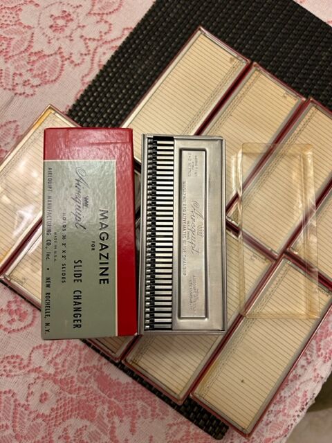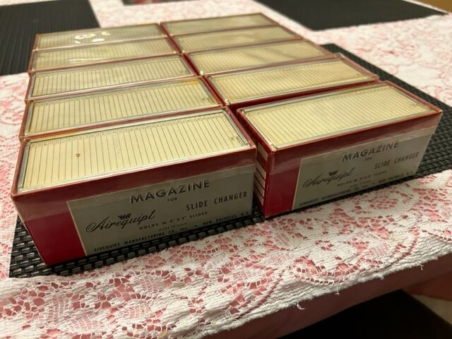 This is a fabulous Vintage Antique set of 10 Airequipt Automatic Slide Changer Magazines -Holds 36 slides each - very gently used vintage condition - includes original boxes - Cash at pick up in Highland, UT. $4 each or $35 for all 10.