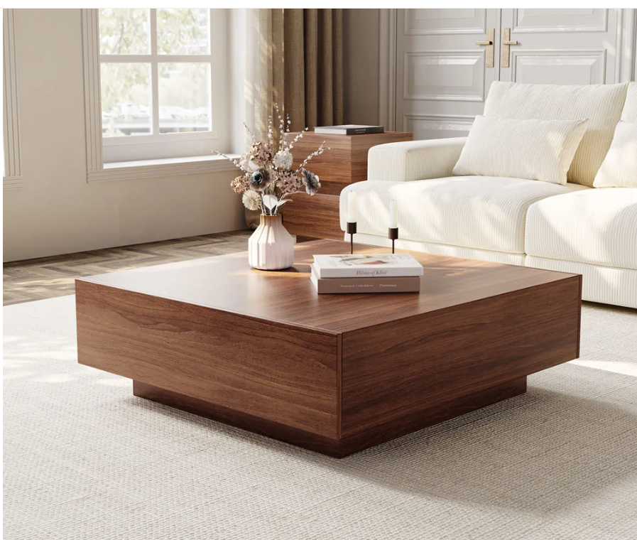 POVISION 35" Square Wood Coffee Table with Storage Drawers