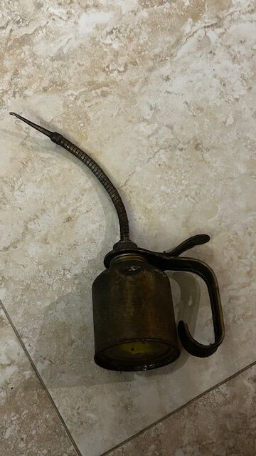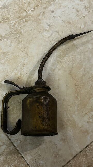 This is a Vintage Eagle Oil Can Thumb Trigger Hydraulic Pump Oiler with a long Spout - not empty - shows dirt and age- cash at pick up in Highland, UT.