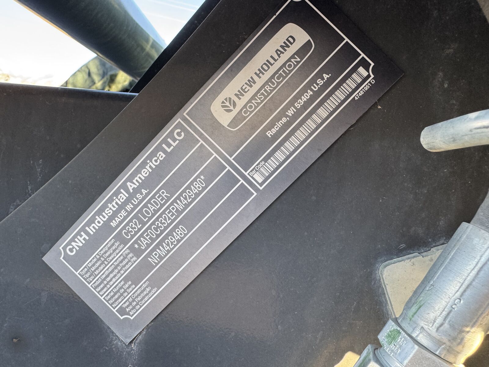 New Holland C332 with 870 hours on it. It is covered under an extended warranty until 08/27/2026. Financing options are available.
