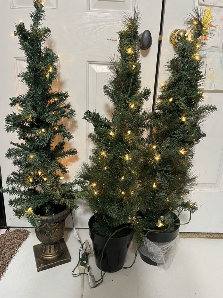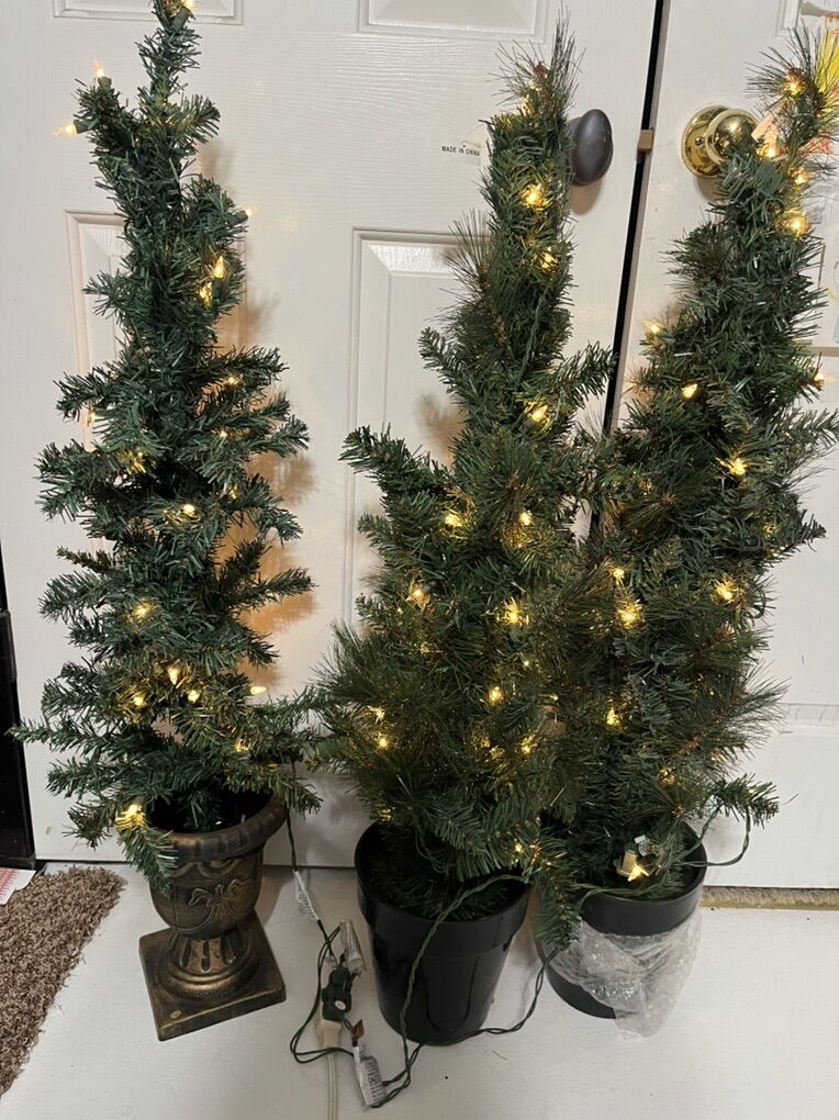 Brand new fake Christmas trees with lights. $35.00 each tree.
