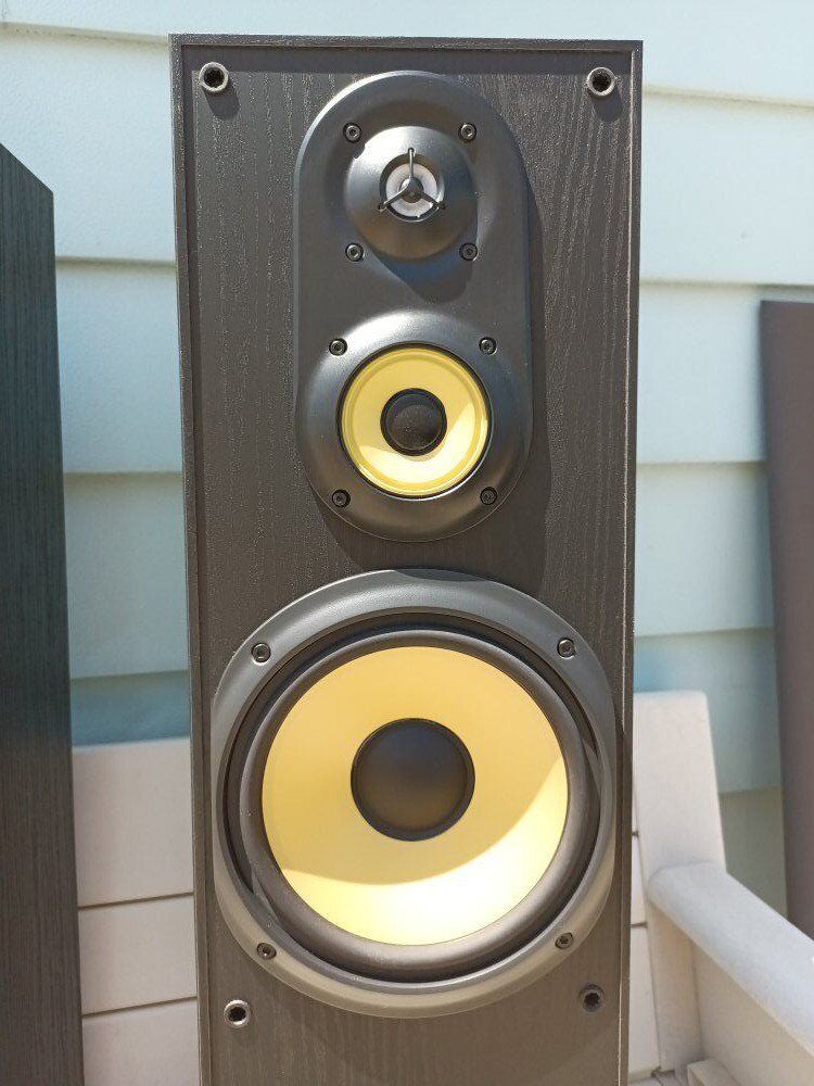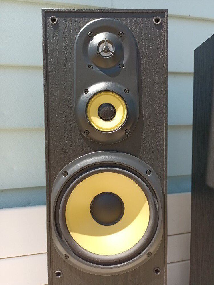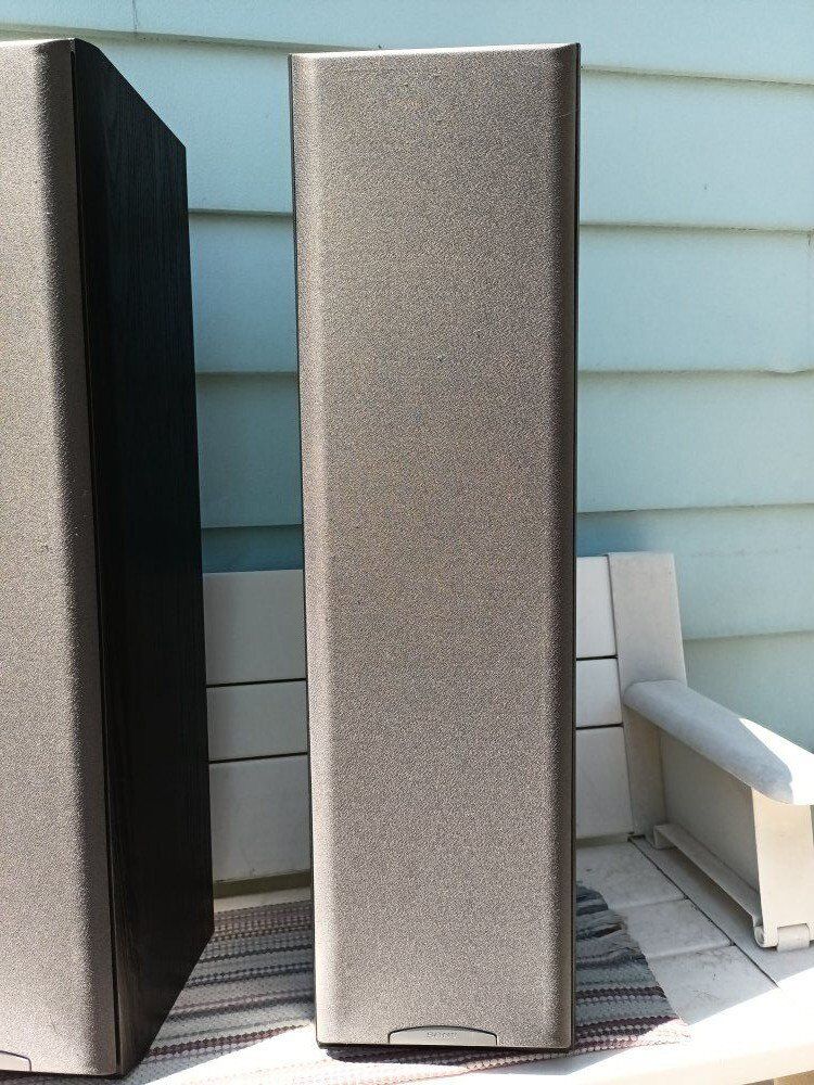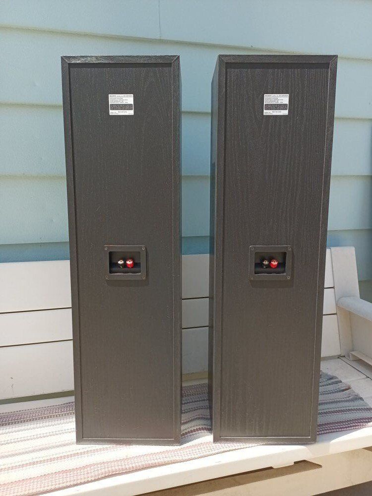 SONY SS-MF-550-H, tower speakers, in good condition, yellow driver's, 8 OHM, 150 watts, banana terminals, floor bass pads, good grills, ( pick up only, cash only ).