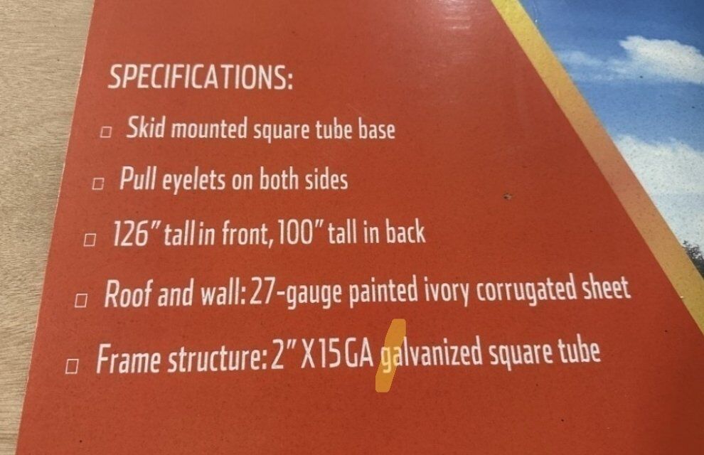 VenmoBrand new in box: 3 sided metal livestock or storage shed with square tube base. Comes with 15 ga square tube and 27 ga currogated sheet walls and roof. Ready to assemble. Box dimensions 85"x40"x16" This is also great for storing your 4 wheelers, lawn mower, snow blower, snowmibile, bikes and other outdoor gear! delivery available