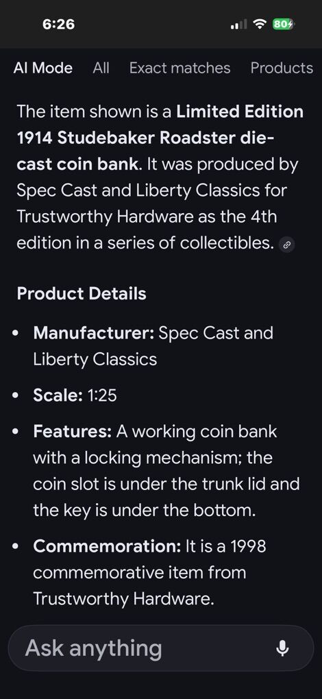 1998 Trusy Worthy coin bank collection car 1914 studebaker roadster