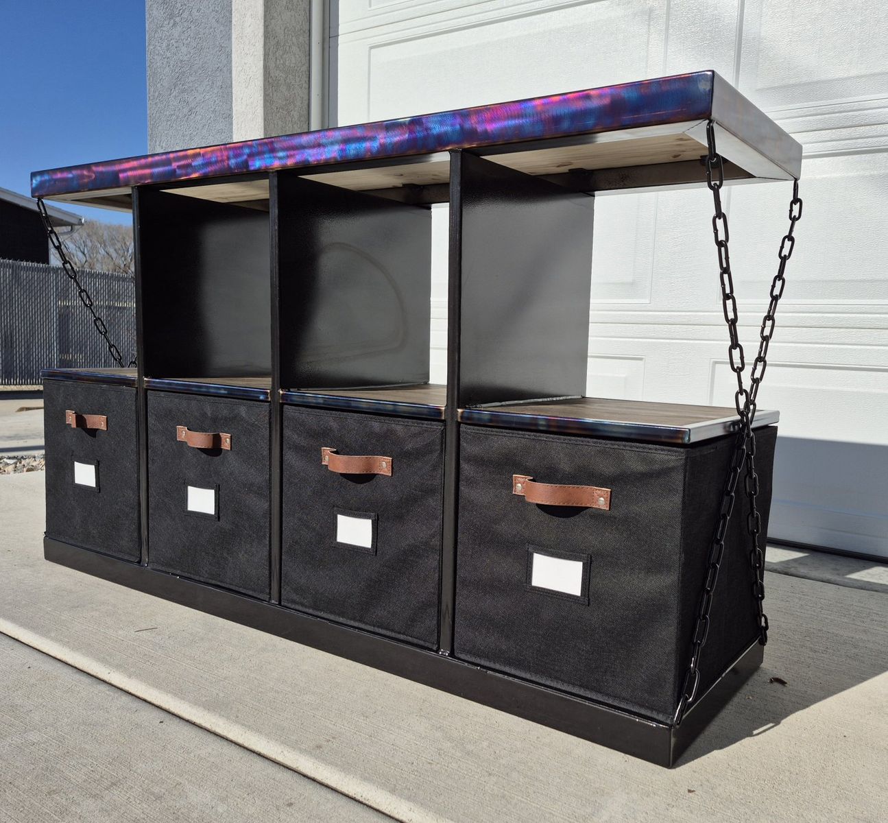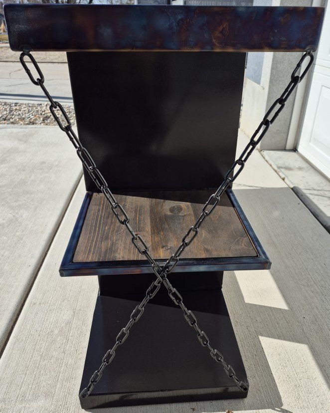 FOR SALE — Custom Industrial Side Table Handcrafted locally by our family-owned business, Alpha Fabrications.