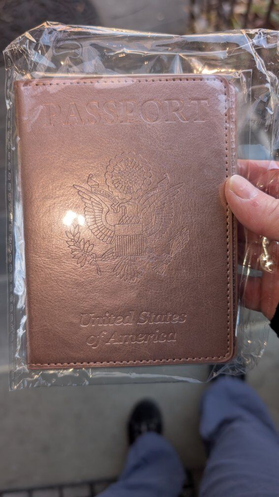 It has a clear pocket in the middle to easily see your passport picture.