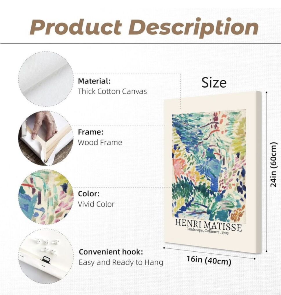 ApplePaySet of 3 Henri Matisse Wall Art Canvas, Vintage Prints Landscape,16 x 24 x 3