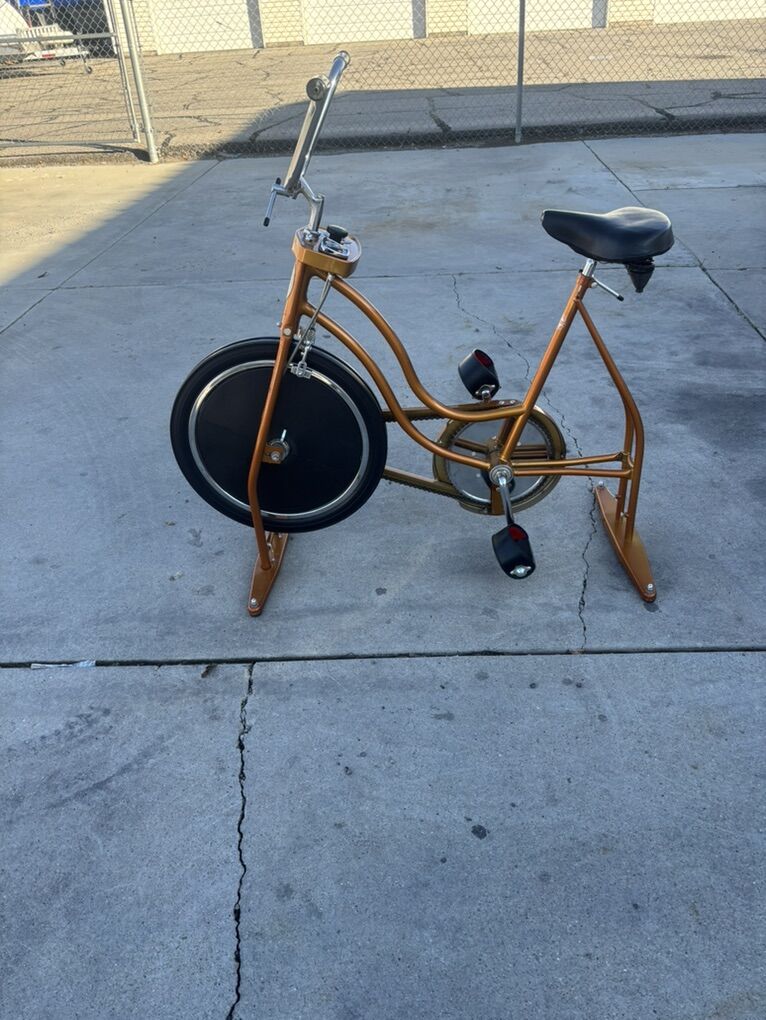 vintage Schwinn XR-8 stationary exercise bike in orange gold.