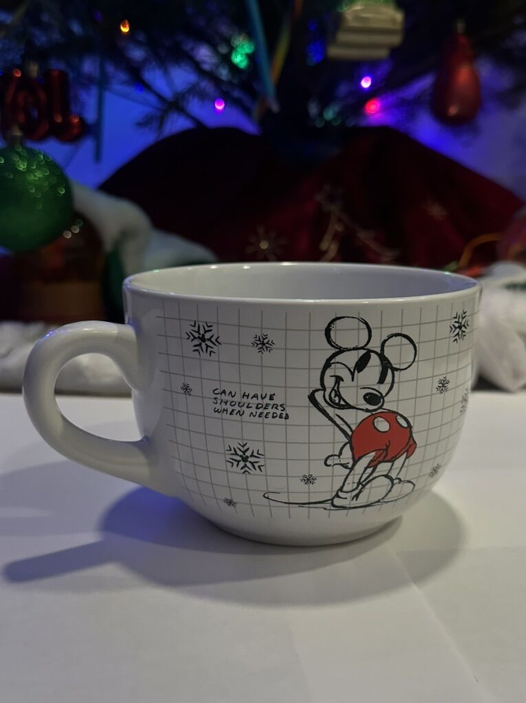 VenmoThe Mickey Mouse Christmas Mug/bowl is a festive and charming addition to any Disney fan's collection. No wear or tear Featuring the iconic character Mickey Mouse, this mug brings a touch of nostalgia and whimsy to your holiday celebrations. Made by Disney, this mug is both practical and collectible, perfect for enjoying hot cocoa or displaying as a decorative piece during the Christmas season. Its unique design and character-themed details make it a must-have for any Disney enthusiast.