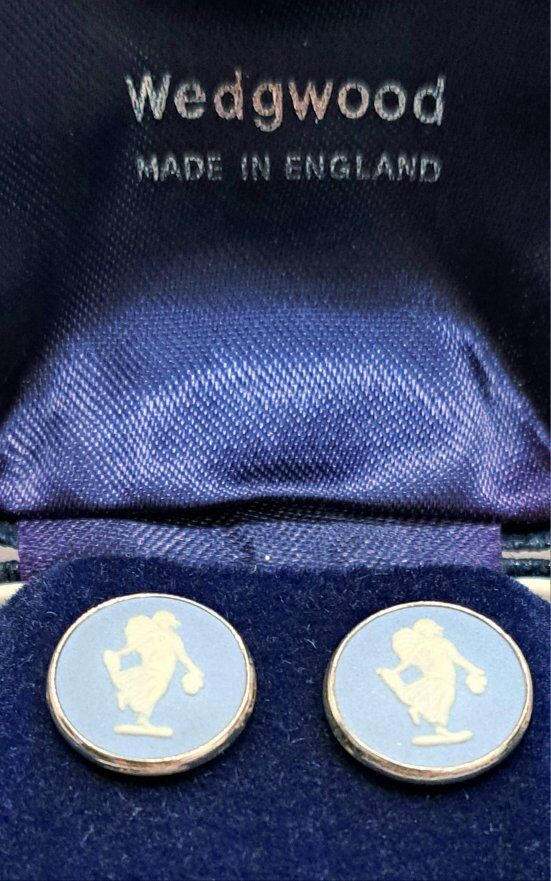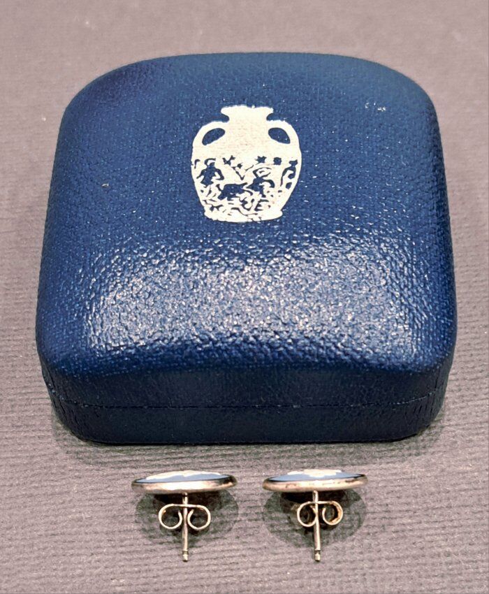 Rare Signed Wedgwood Sterling Silver Jasperware Cameo Stud Earrings w/Original Box - $200 Cash - Signed JW (Josiah Wedgwood) with three hallmarks: Lion for silver, Anchor for manufacturing location - Birmingham, and the letter H for the date they were made.