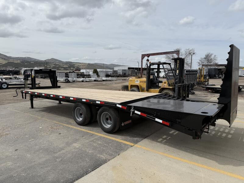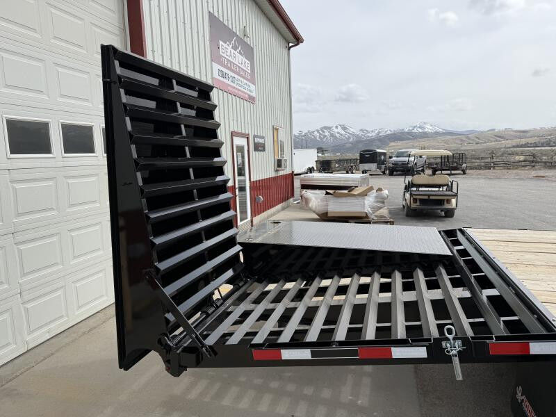 Titan makes possibly some of the most rugged, heavy duty, and long lasting Flat bed trailers on the market! This trailer comes with a Continuous 10" I-Beam Frame that runs the full length of the deck which then tapers down into the impressive heavy duty, full width, 6' Wide Glide Ramps. These are the best ramps fold over ramps in the industry, Period. Raised angle iron in both the ramps and the dovetail are added for maximum traction. With 12' of approach, you can make your equipment loading even easier. The ramps can be stowed in the upright or flat positions, but when you fold them down flat, you just gained an extra 6' of deck space that can hold just as much weight as the deck itself. If you're ready to up your towing game, or have been looking for a trailer that can handle as much work as you can throw at it. Your first choice should be THE TITAN RUFF NECK!