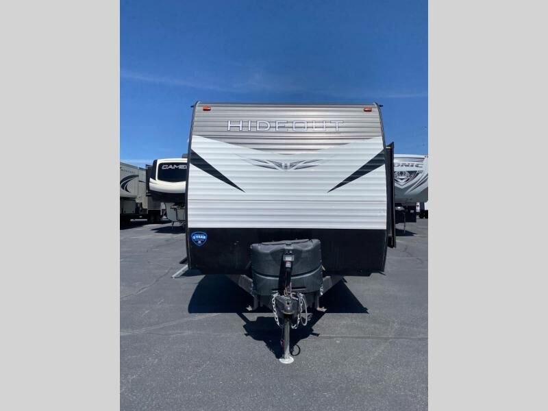 For any trip, whether near or far, you will want a Hideout fifth wheel, travel trailer, or toy hauler by Keystone RV. These models are lightweight which makes them easy to hook up and tow. Just load up your belongings and head out for a weekend away in your own Hideout retreat. A few key features inside of each model include: pleated shades in the living area, a high-rise faucet in the kitchen, and full-strutted storage under the master bed, and the exterior is just as indulgent with its powder-coated I-beam frame, exterior speakers, black radius window frames, hurricane straps reinforced structure, and the lighted adjustable power awning. Don't wait any longer to enjoy your own private hideout with the Keystone Hideout!