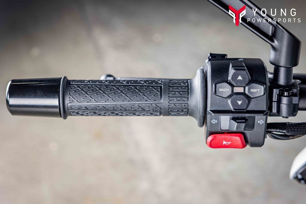 Curved 5" TFT Display with TPMS and Ride App Integration- The dash does more than just look good. It puts your tire pressures, ride data, Bluetooth® connectivity, and Ride App functions right at your fingertips. It’s a premium cockpit experience that supports the ride—not distracts from it.