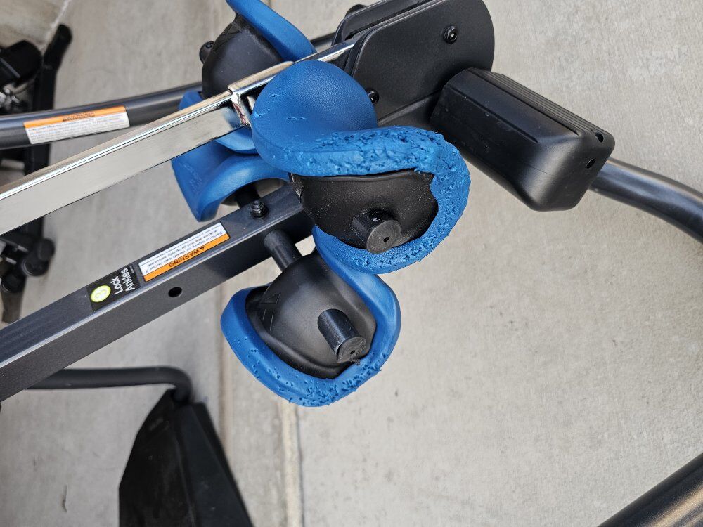 It is several years old, but still has the user manuel attached. There was an incident with a cat some time ago that resulted in some bite marks on the ankle pad things.