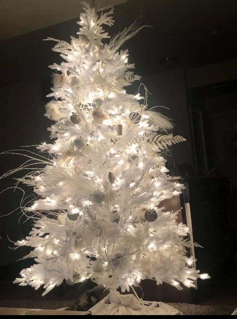 Lots of Christmas tree decorations from silver, to off white, ecru. See Less