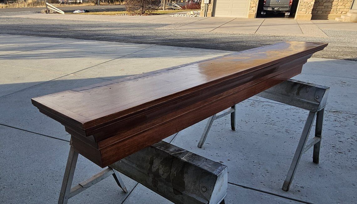 VenmoRemodeling and no longer need this. Has a few scuff marks from dismantling but all in all its in good shape and VERY well built. Or measures 87" long X 12" deep X 9 1/8 tall. Asking $100