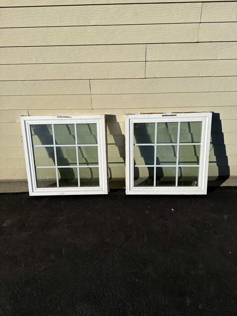 VenmoSize 29 1/2 X 29 1/2 picture windows fixed glass they do not open. Both of them are the same size with white grids high-performance low E glass block frame. The nailing fin has been removed. Cash or Venmo only $50 each.