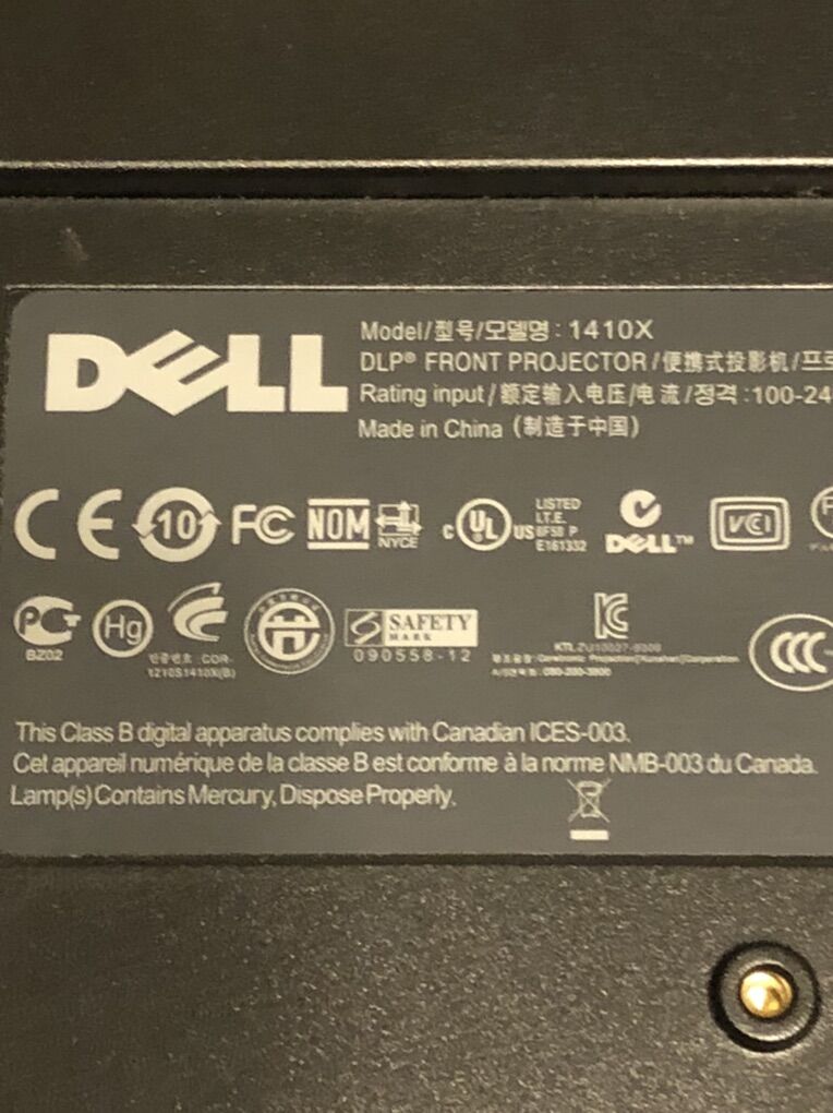 DLP 1410X front projector, works good. Can mount on ceiling or on tabletop. Comes with remote, cords, and extra bulb.