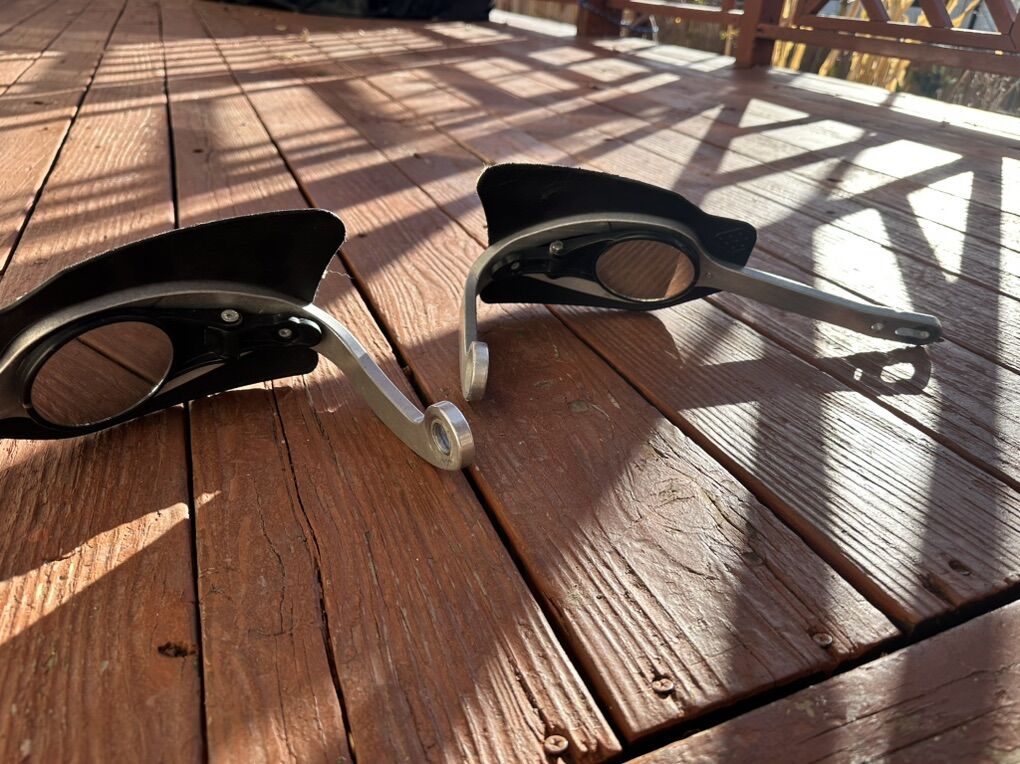 VenmoHighway dirt bike hand guards. Should work on most ktm’s. Came off 2023 ktm 450 xcf-w. Plastics are a little scratched up but the mirrors are in great shape and the frame is un damaged. These are the most burley hand guards out there and the mirrors are nice to have. I think I payed 225$ for these new so these are a great price. I’ve got the bar end bolts and mounting hardware for them