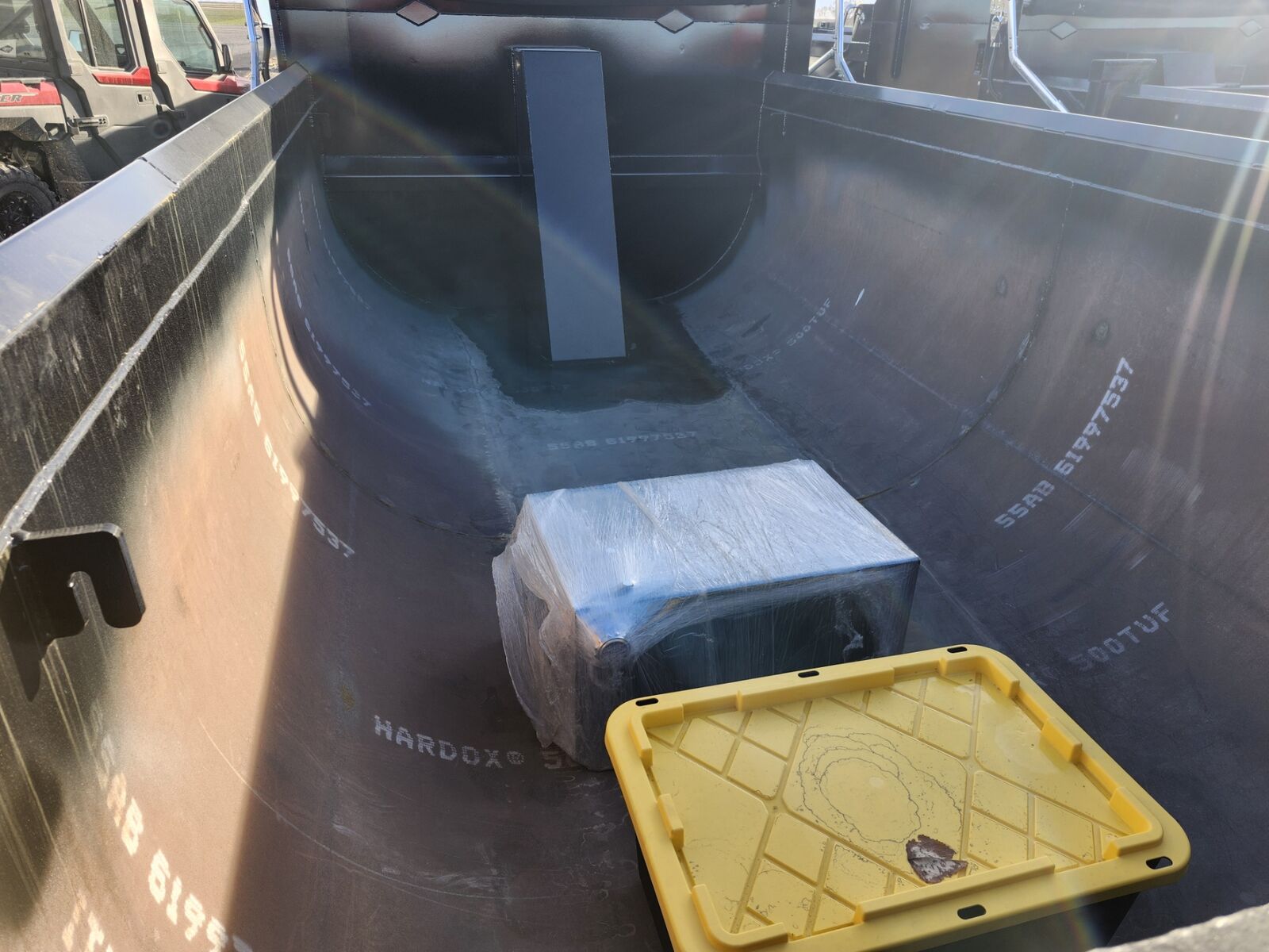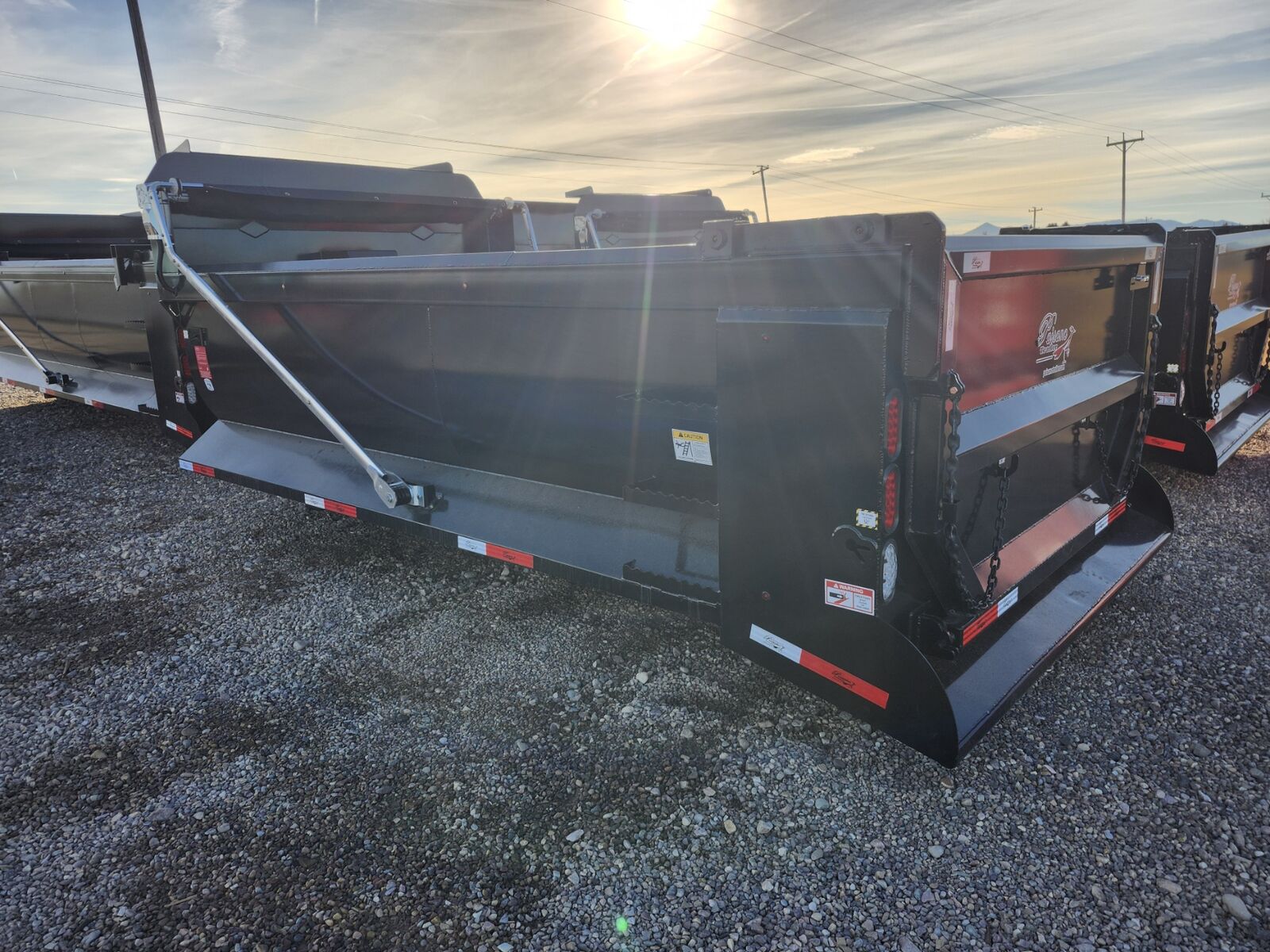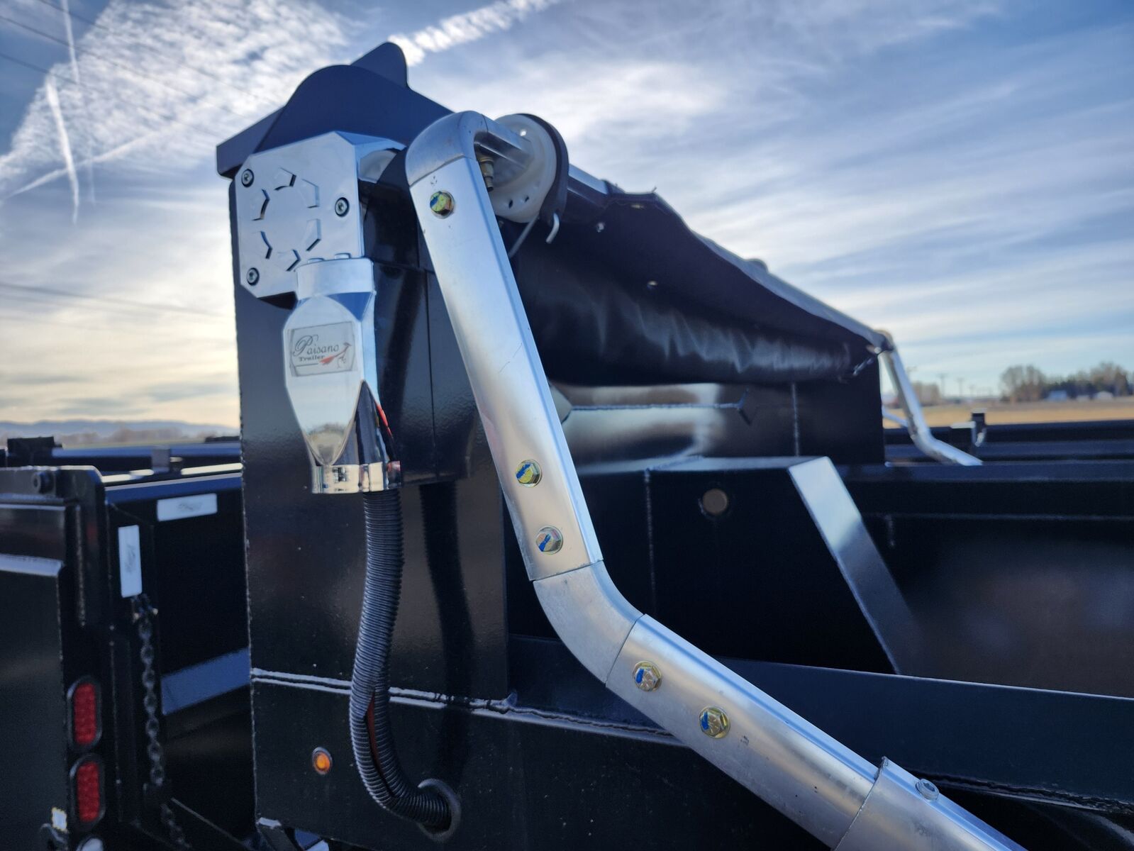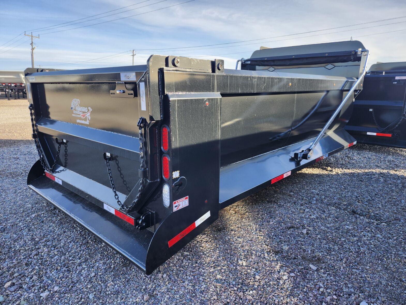 New 15' x 96" x 44" Paisano dump body, 1/4" Hardox "Tuff 500" hardened steel tub/gate, Hi-Lift and gravity end gate, Hi-lift hinge set 22" forward, Electric mesh tarp, Air gate lock, Sub-frame mount, Subframe hinge point at 14', Doghouse mount ram, Includes 25 gallon hydraulic tank/pump/control tower/switches, Plus F.E.T, Ask about install!!