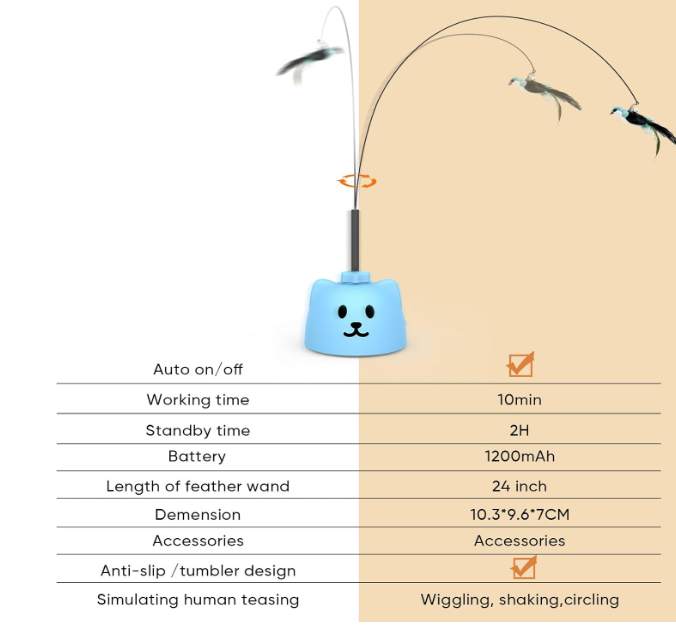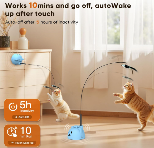 ZelleAutomatic Electric Flying Bird Feather Cat Toy - Best Kitten & Adult Cat Enrichment Toy Stick-on Hanging Electric Kitty Toys for Bored Cats