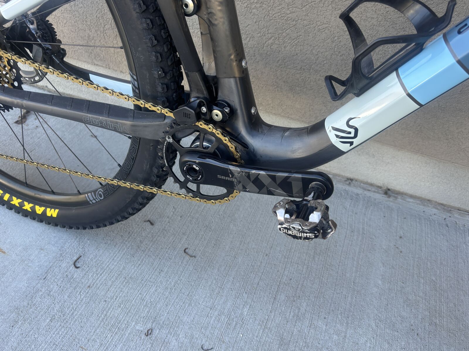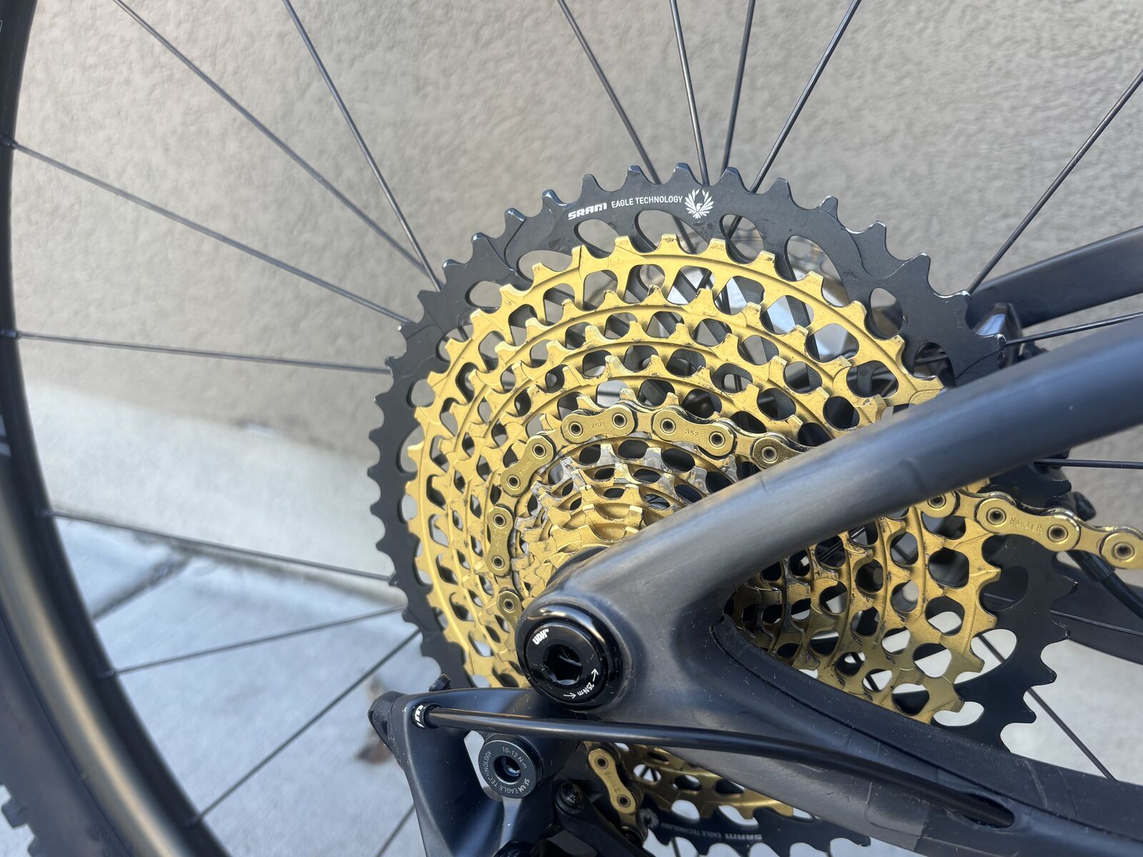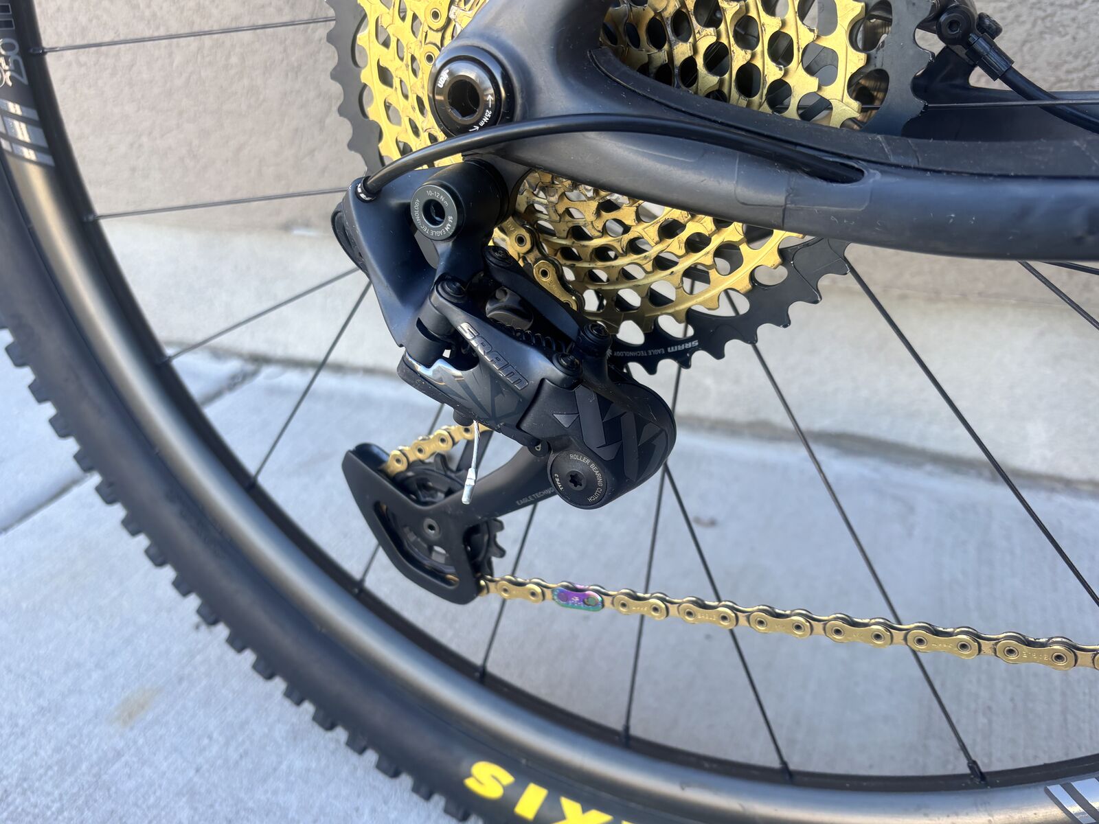 Fox Factory 34 Step cast Fork with Adjustable dampener Fox Factory shock w/lockout lever Fox Factory SL dropper Seatpost FULL - SRAM XX1 Gold Drivetrain with the XX1 Gripshifter (Unicorn!!) and/or brand new X01 trigger installed. Carbon XX1 Cranks XTR 4-Piston Brakes and rotors Race Face AR30 aluminum wheelset Diety Carbon BarS
