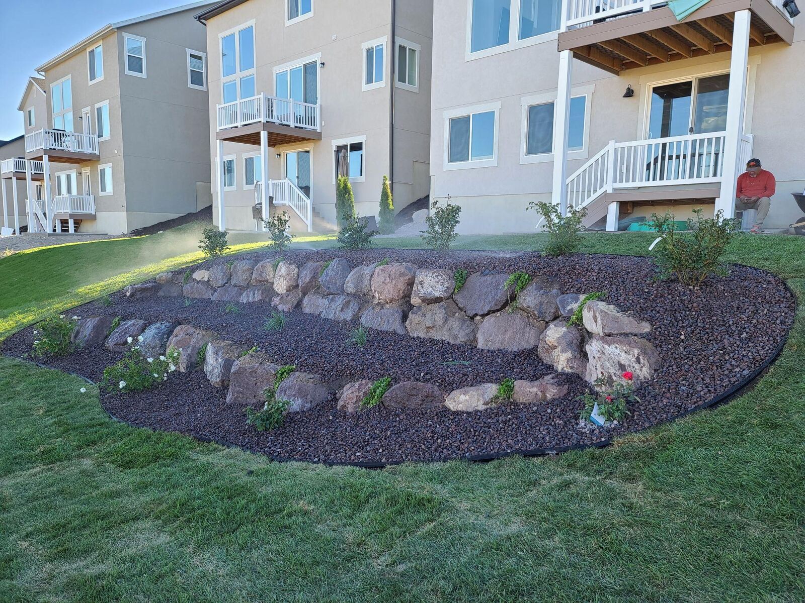 DMJ Is offering the services in the following services, ;weekly lawn maintenance, irrigation, sprinkler systems, flat stones and paver patios, fire pits, water features, design metal retaining walls and mail boxes. in ground trampolines, and artificial turf., landscape lighting.