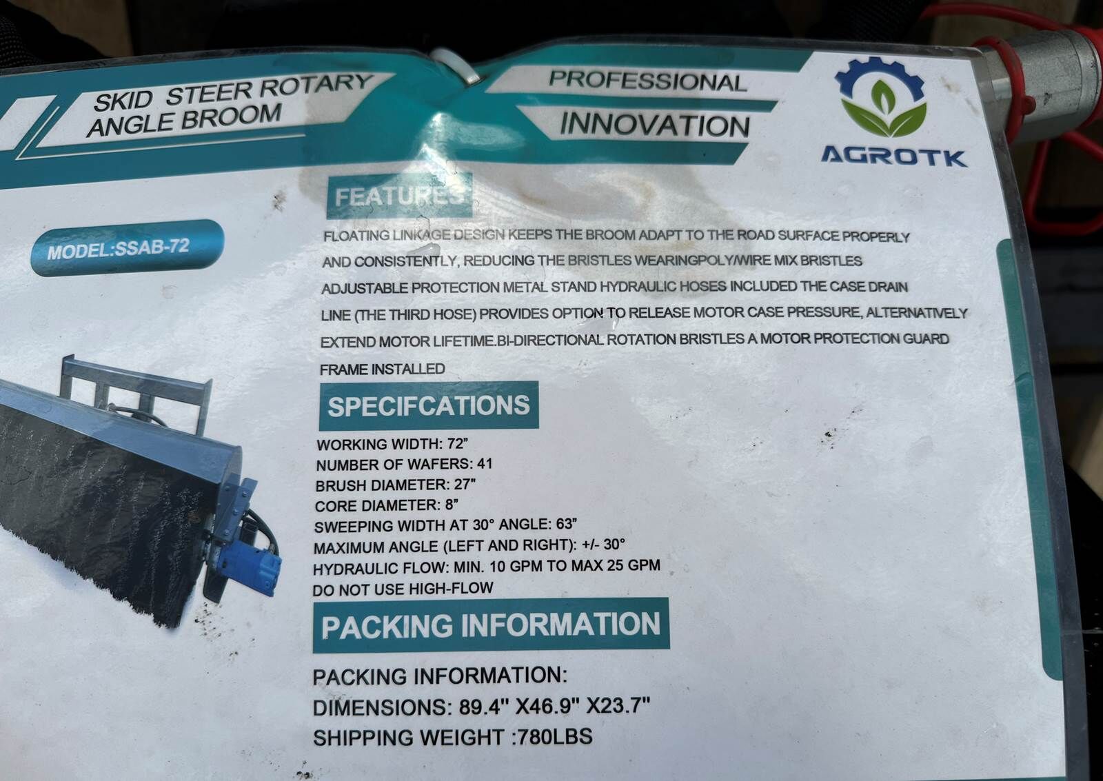 NEW UNUSED Rotary Angle Broom 72" Skid Steer 2023 Attachment