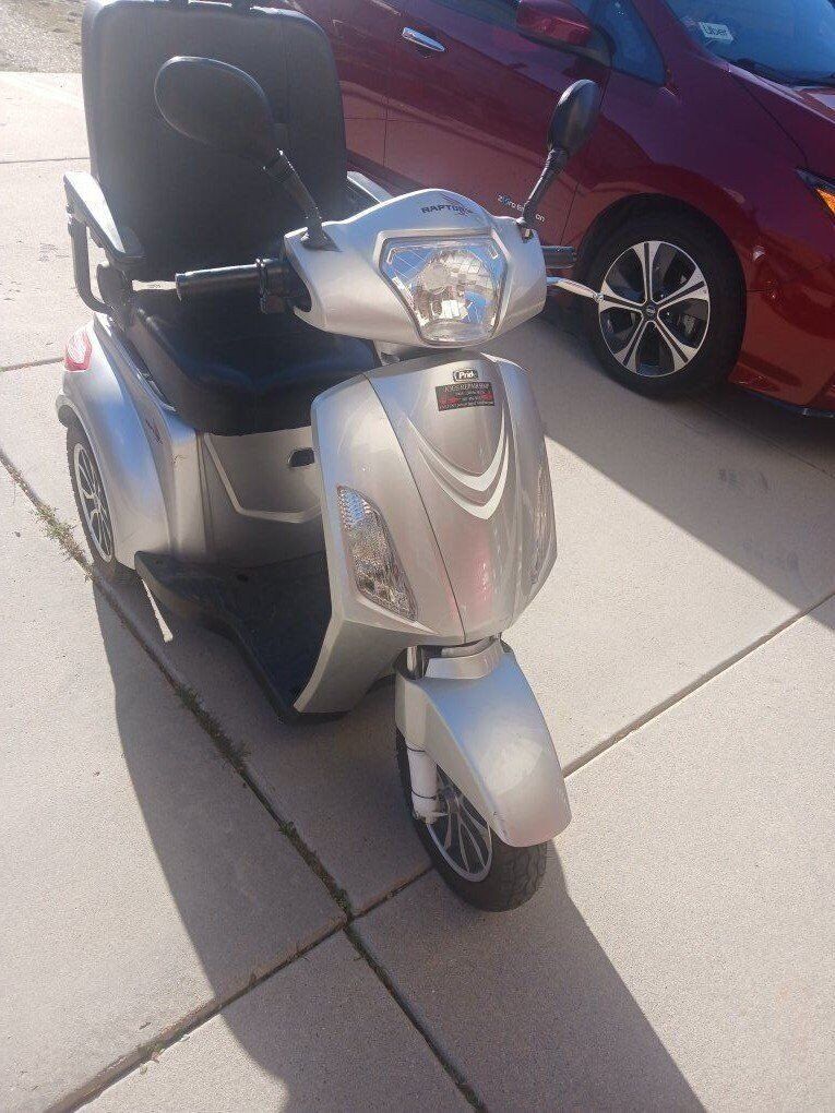 this is a quality made pride raptor electric scooter. it has high and low range will go up to 14 miles an hour has forward& reverse horn, turn signals , and A headlight, cargo basket, and a charger. It sells for over $3100 new. the batteries are in good shape and it runs well something for running errands or for a handicap person to get around outside on. cash only& low ball offers will be rejected.