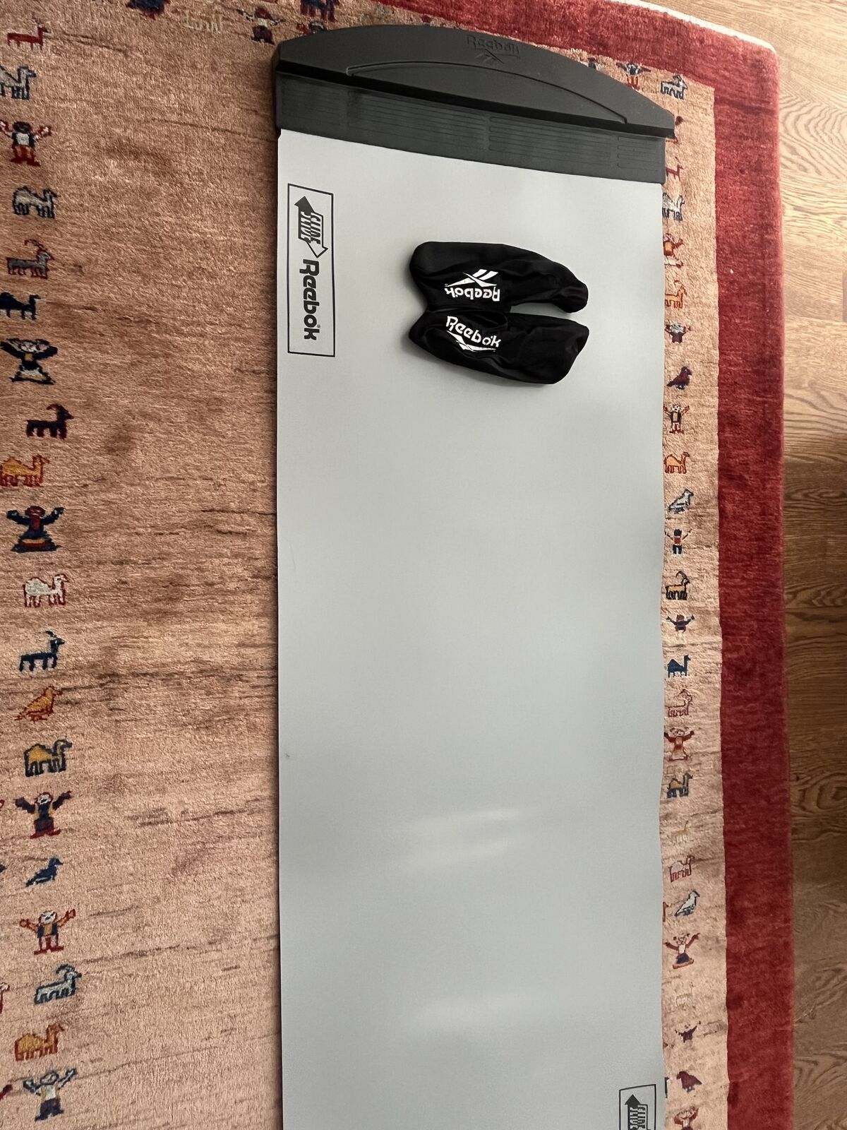 Reebok sliding exercise mat with socks. In very good, slightly used condition.