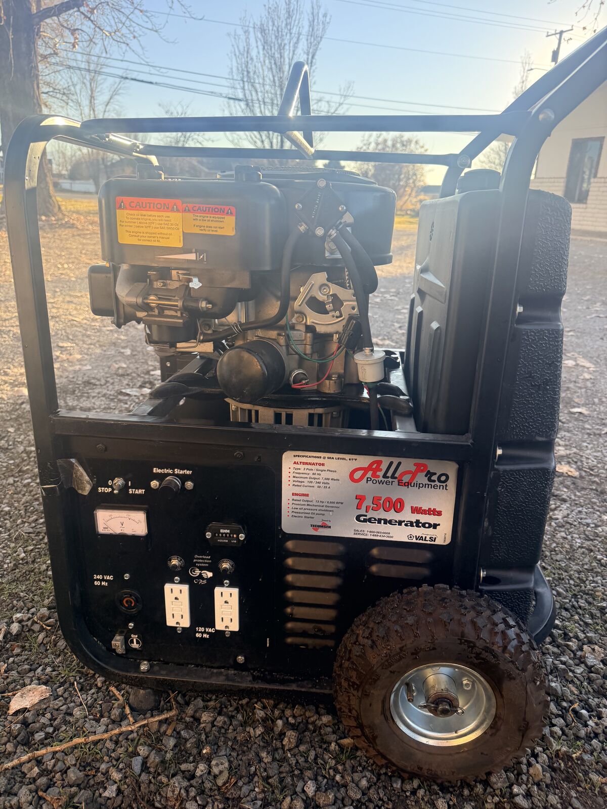 New AllPro Power Equipment VALSI 7.5KW 7500w Generator electric start needs battery.Tecumseh Enduro XL/c 357cc OHV motor Engine New starting battery