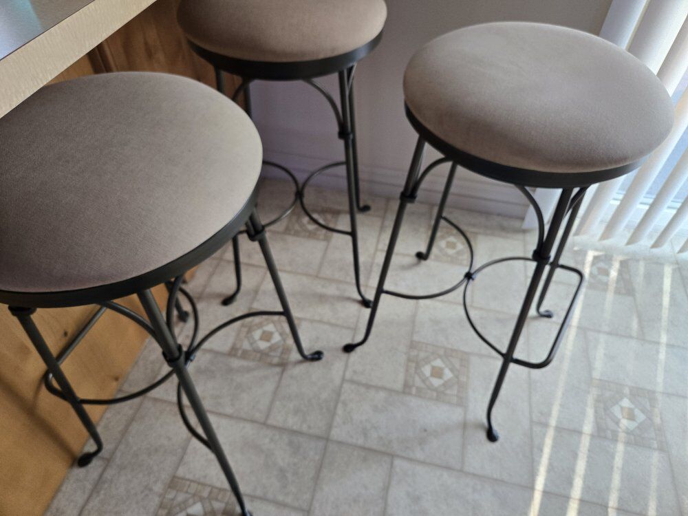 Three sturdy swivel barstools from a non smoking house. In good condition. Asking $90 OBO. Cash only and no scammers please.