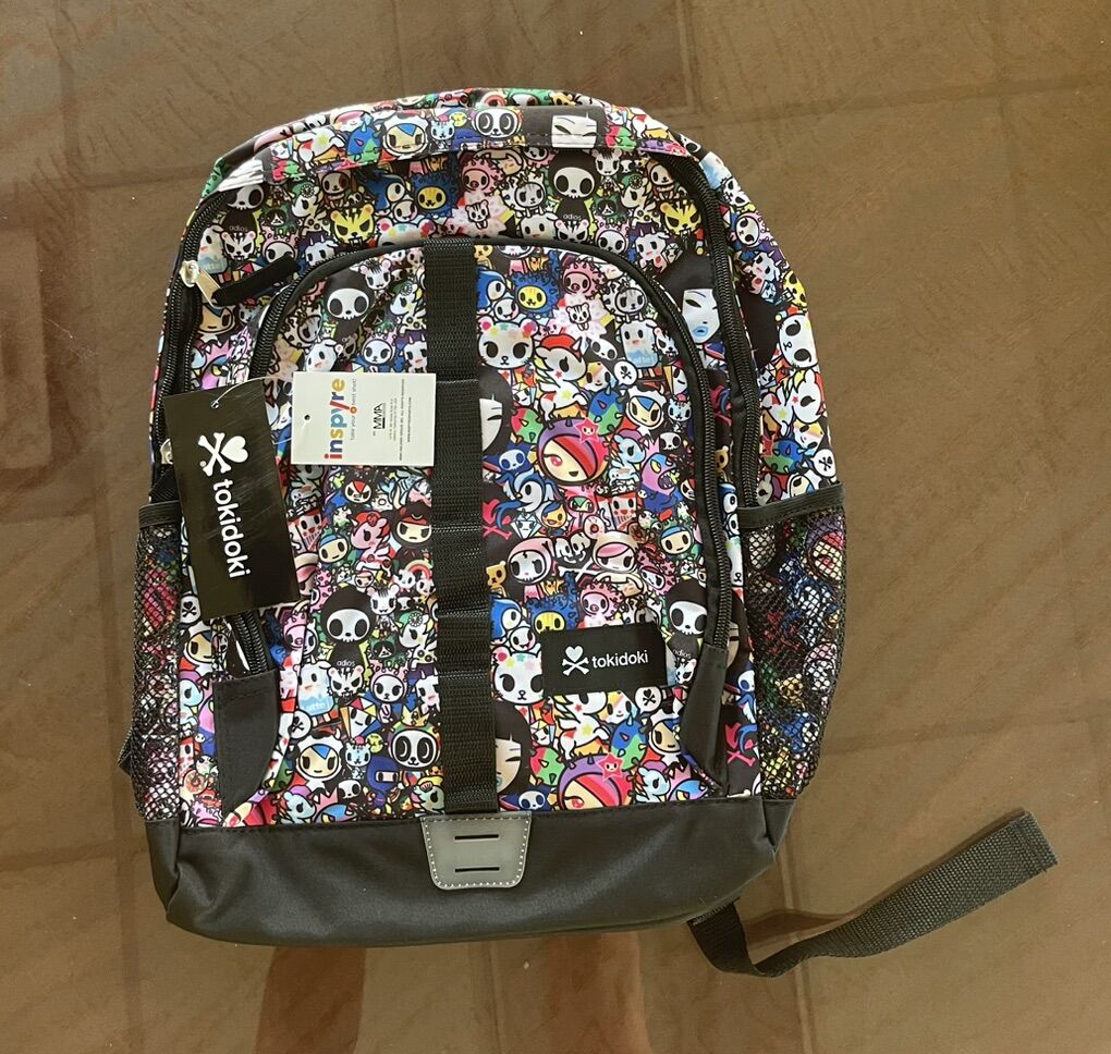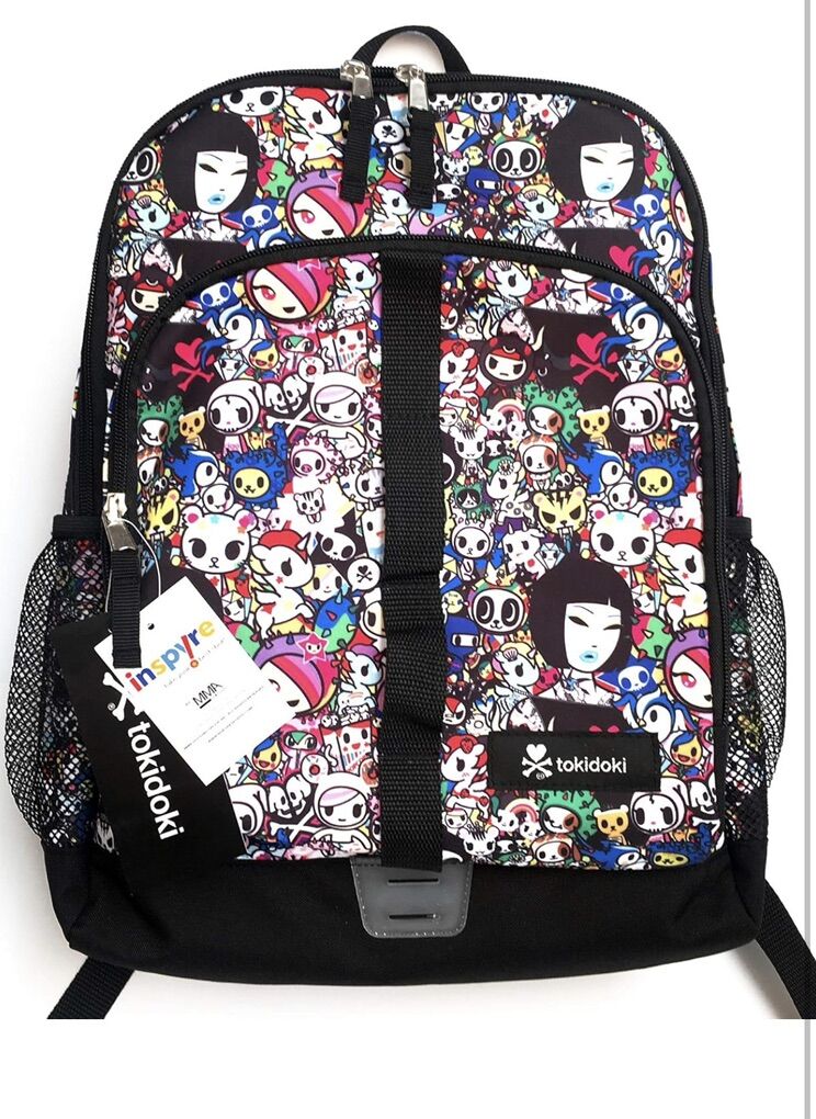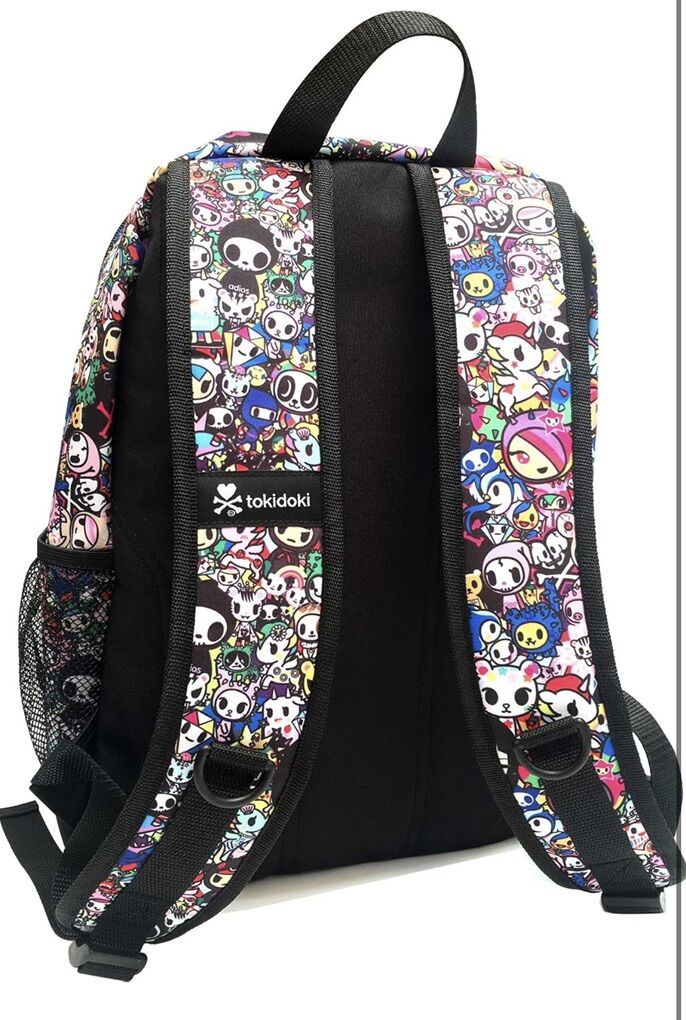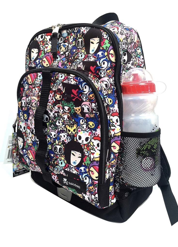 TOKIDOKI: Make a statement and add to your cute, bright, authentic TokiDoki lifestyle collection with this super cute authentic backpack Whether it is apparel, handbags, accessories, or toys, TokiDoki combines unique style and practicality to deliver you the highest-quality products SECURE STORAGE provided in the large main compartment with sturdy dual zippers Features convenient mesh water bottle pockets on either side PADDED SHOULDER STRAPS make carrying this backpack super comfortable, even when it is packed full of your gear MULTI-PURPOSE: Whether you are transporting your gear to a game or on your way to class, take your favorite TokiDoki friends with you wherever you go with this backpack! DIMENSIONS: This TokiDoki Printed Backpack measures 16 x 12 x 7 inches
