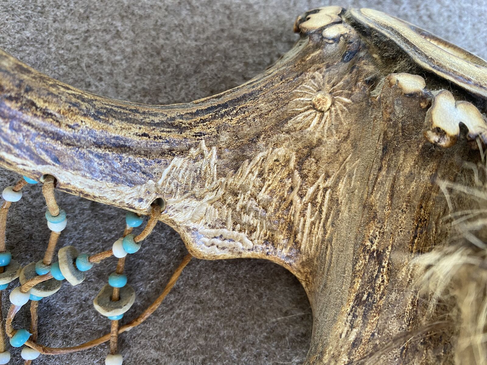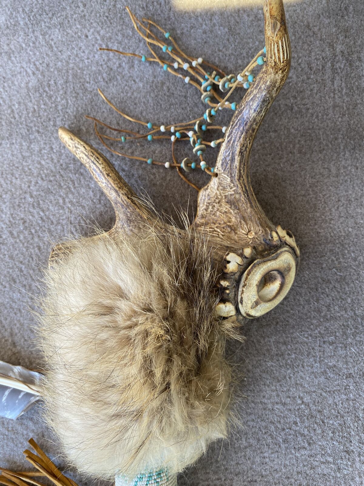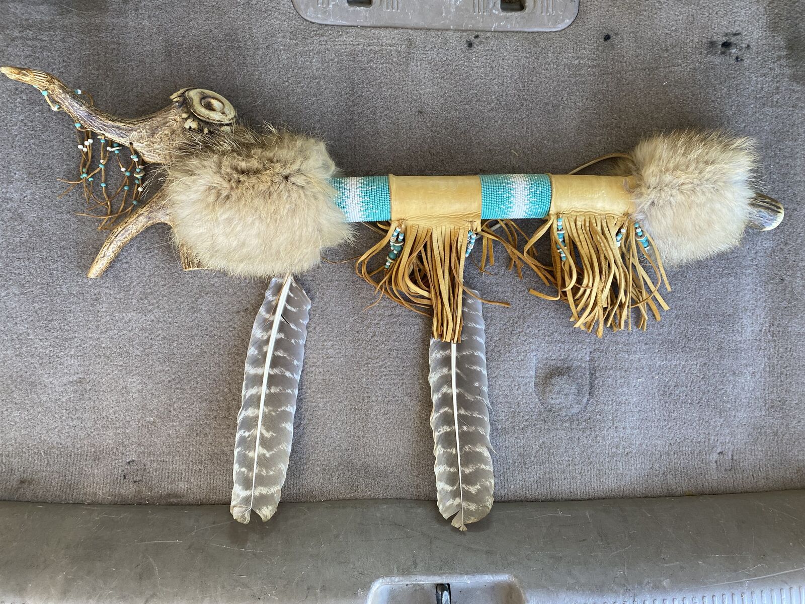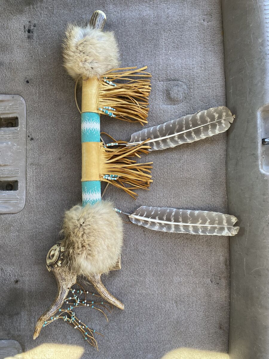 ZelleHere's a beautiful hand made Elk antler ceremonial pipe with intricate bead work and engraving! Also wrapped in buckskin and fur. This piece is beautifully done and will add to any Western themed decor. I did not make this myself. I acquired it from an estate. I have other great pieces available. Need to see in person to appreciate! Asking 220 or best offer. Located in Herriman Utah.