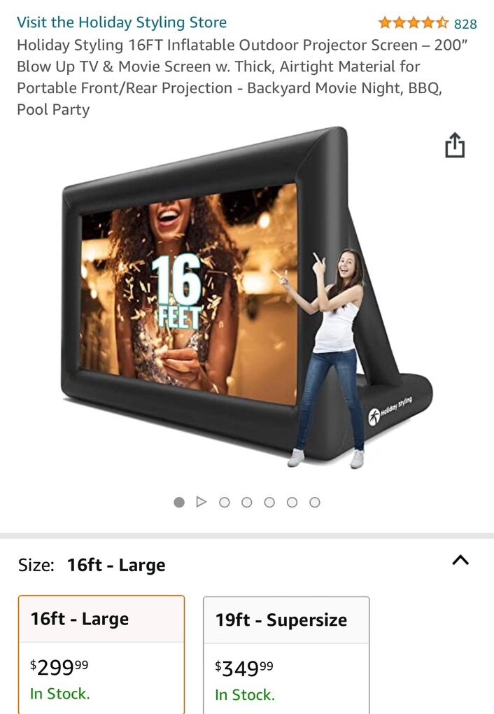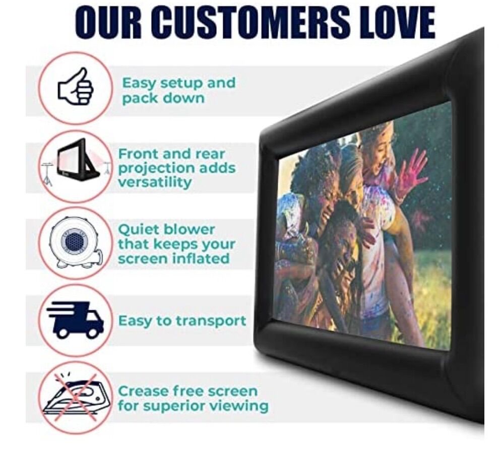 Holiday Styling 16FT Inflatable Outdoor Projector Screen - 200 Blow Up TV & Movie Screen w. Thick, Airtight Material for Portable Front/Rear Projection - Backyard Movie Night, BBQ, Pool Party