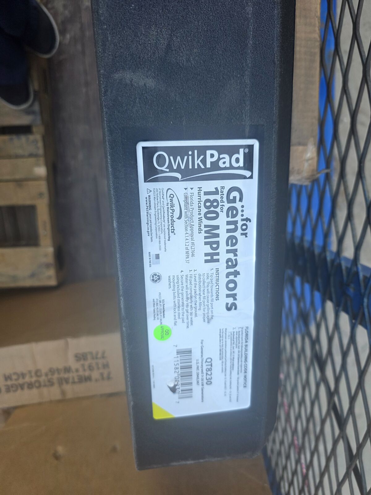 The QwikPad for Generators includes hardware for Generac and Honeywell. Unfilled weight is 46 lbs and 330lbs once filled. UV-resistant, high durability construction.