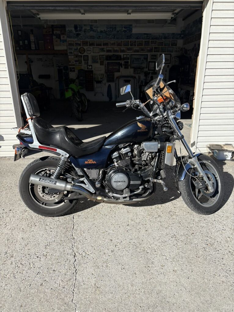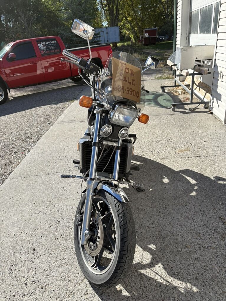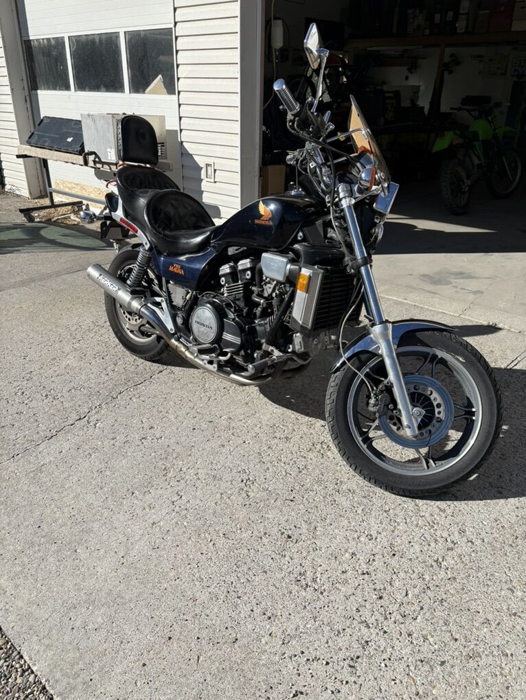 Venmo1983 Honda V65 Magna. Vintage Honda muscle bike in great condition and running and shifting great. Has had carbs cleaned and adjusted recently. Tires still have a lot of good tread, has custom 2 up seat that is great for long rides. Back rest and luggage rack. Has Kerker 4 into 1 exhaust. Just recently repacked and sealed. Small wind screen for deflecting bugs and birds. I have a mostly complete parts bike with a bad motor that is included with the purchase of this bike. Both bikes are 1983. Clean title for the running bike and still trying to secure the title for the parts bike. Great bike and fun to ride and anyone familiar with the V65 knows how they put the power to the ground. I have to many bikes, projects and completed, I really need to find a good home for this package. It has a few little areas that need some TLC. But I am enjoying driving it to work while I sort things out. Please reach out to me if you have any questions or concerns and I can tell you everything I know about them. Located in Blackfoot, Idaho and ready for a new owner., message me or call 208 six 8 four 33 hundred. Trying to add pictures but having a little difficulty. I can send pictures directly to anyone interested until I can get them added to this listing.