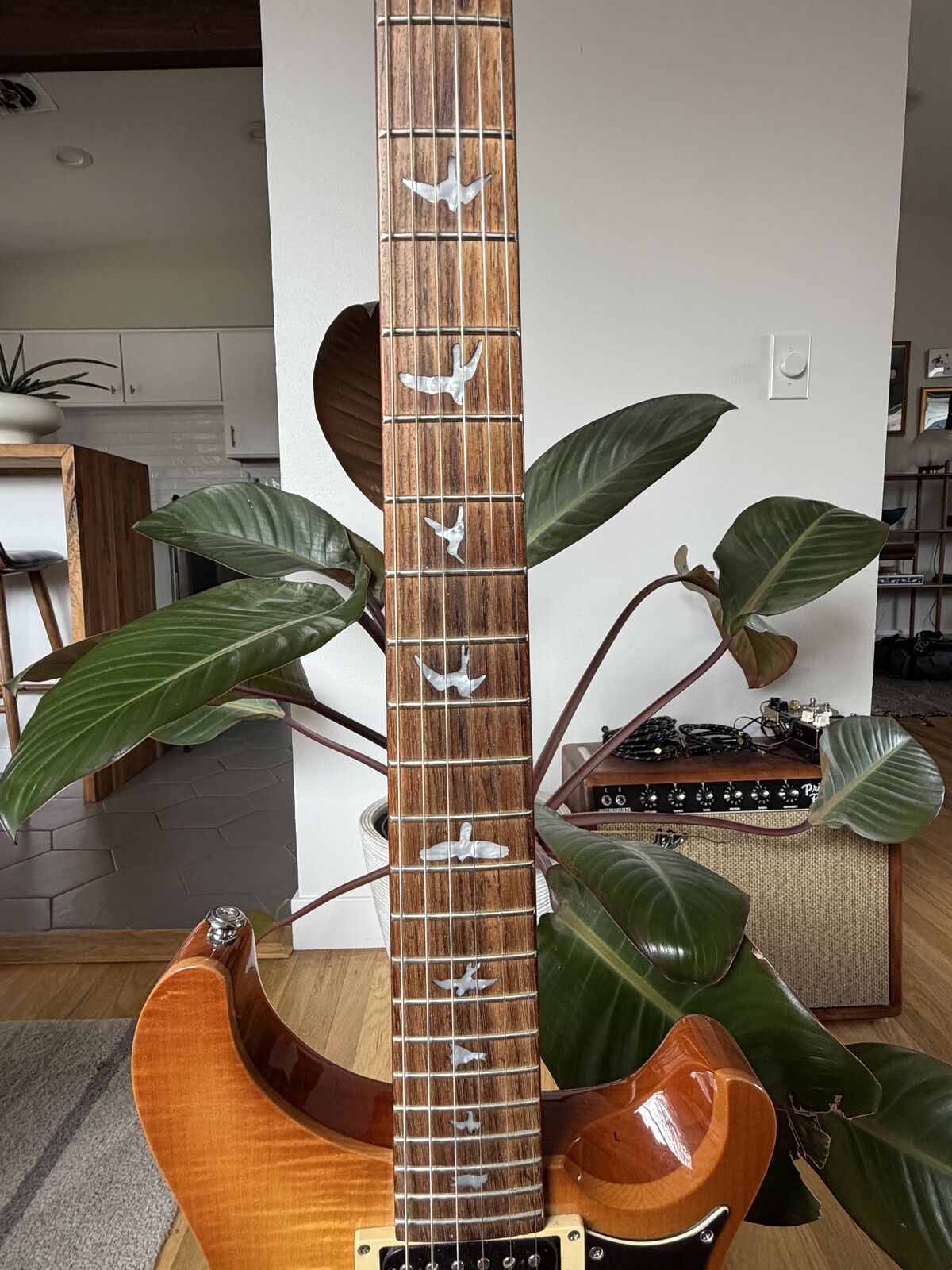 PRS “bird” inlays; comfortable, balanced feel
