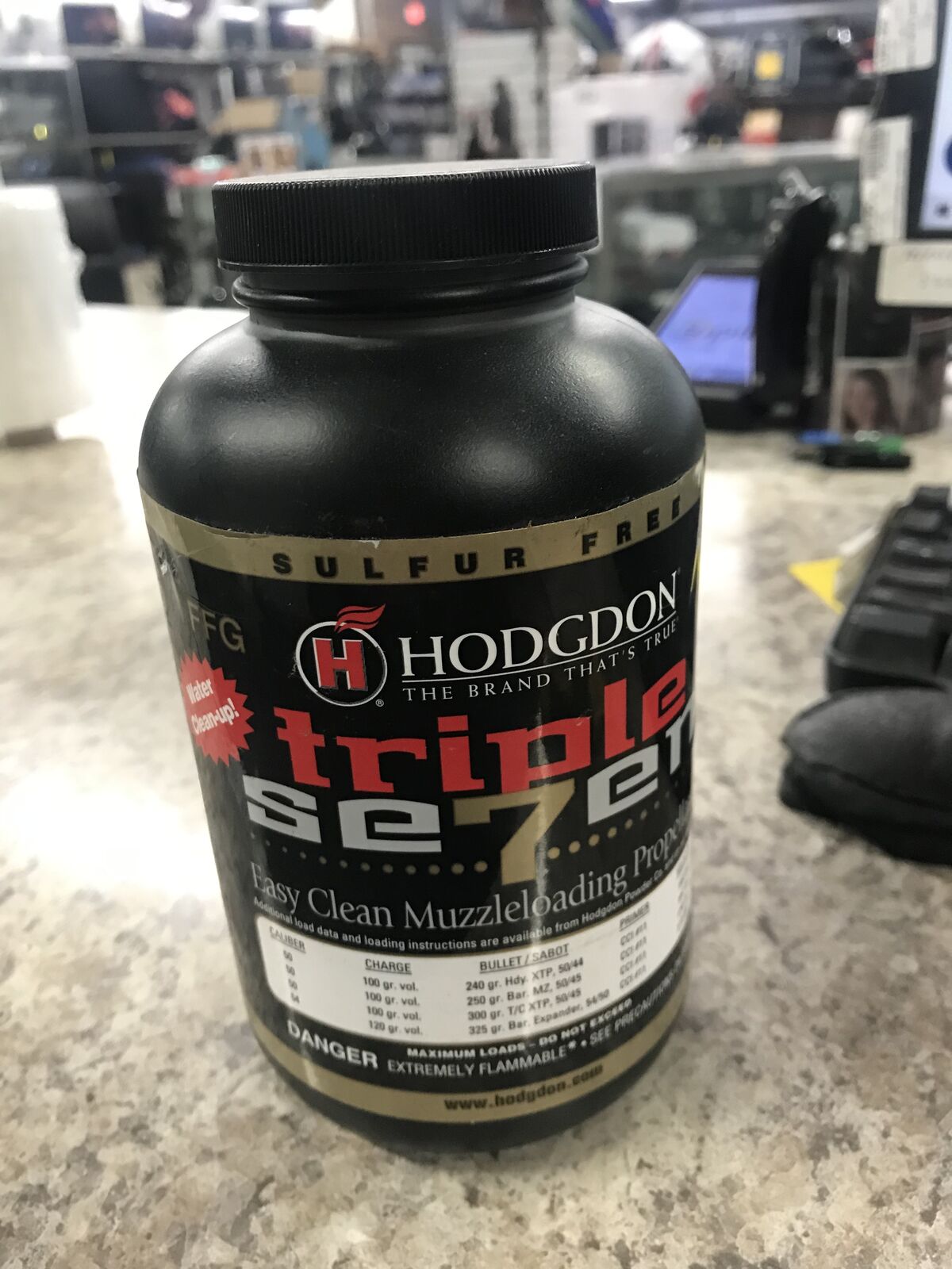 hodgdon triple 7 powder The revolutionary granulated muzzle loading propellant that cleans up with water alone. Contains no sulfur, so there are no strong smells and clean-up is a breeze. Triple Seven granulated powder is intended for use in shotguns and rifles, 40 caliber and larger, and in cartridges.