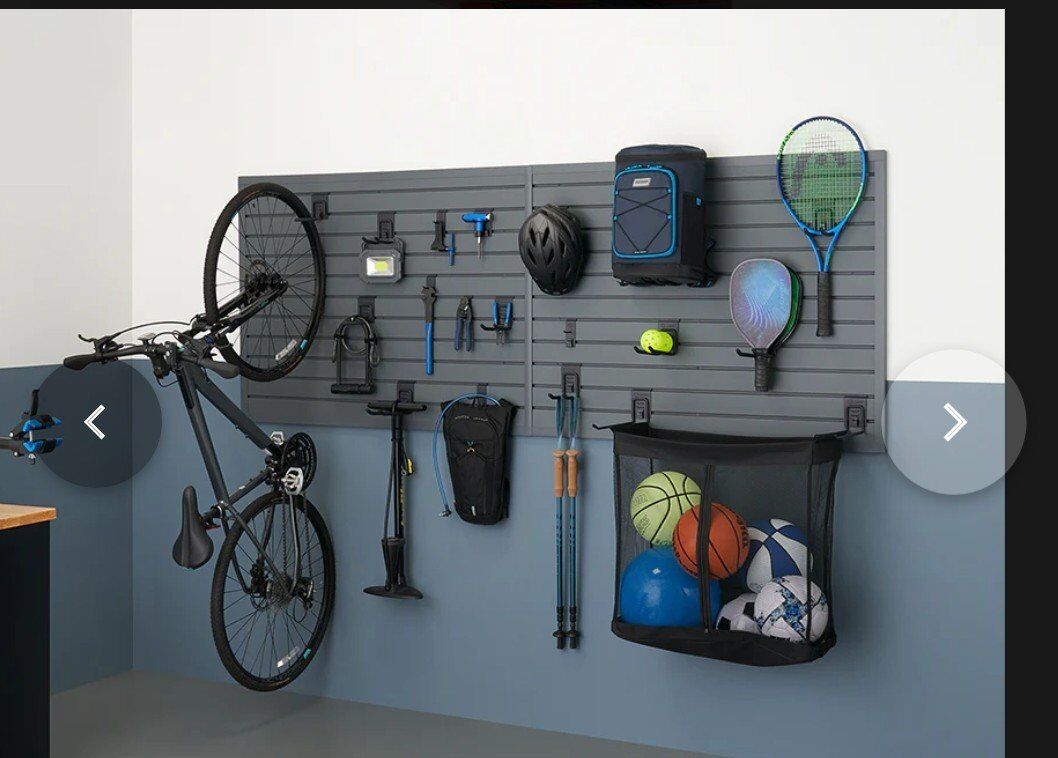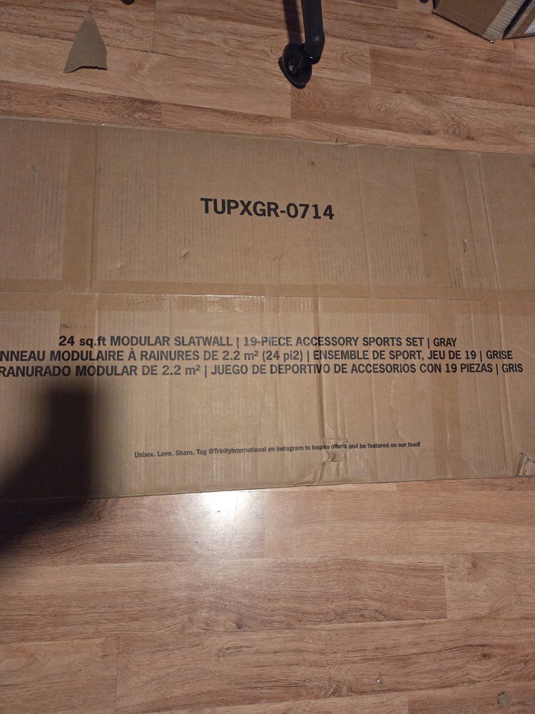 VenmoTRINITY #TUPXGR-0714 24' sq ft modular slatwall 19 piece accessory sports set , color gray, material pvc, 1800 lbs total weight capacity, 3 configuration options 4'×6', 8'×3' and 12'×2, $160 each, two available, send me a message if you are interested I'm located in West Valley City