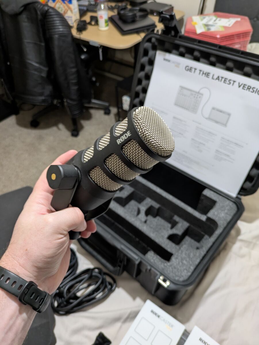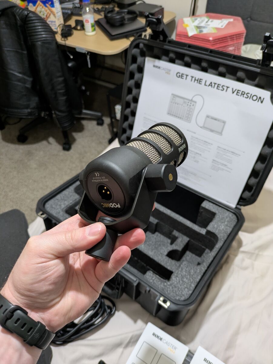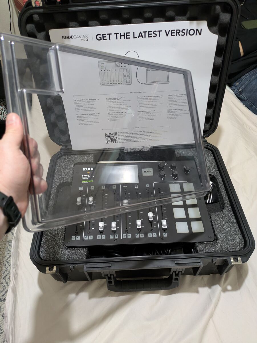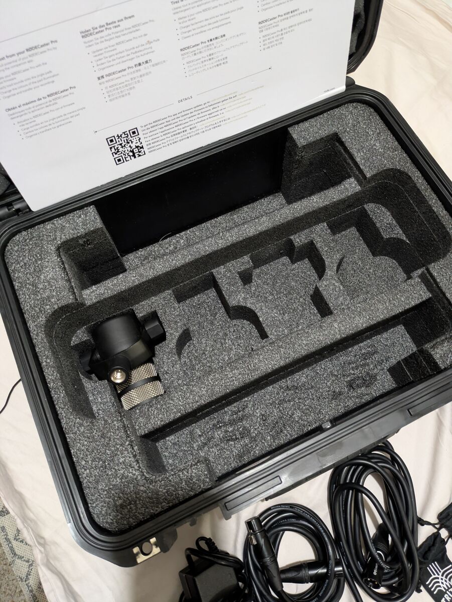 ZelleEverything I'm selling, and approximate original retail prices: Rodecaster Pro ~$600 Rodecaster Pro Cover ~$35 B&H Rodecaster Travel Case ~$150 3x Rode Podmics ~$95/each 2x Podmic pop filters ~$15/each 3x Rode PSA1 mic arms ~$100/each 3x XLR Cables ~$15/each 3x Triton Audio Fethead inline preamps ~$75/each 3x Twelve pack of sound dampening wall panels ~$20/each (red, black, greyish white) Over $1700 worth of podcast making goodness! Price is OBO, but if you lead with less than what I've listed for, I'm going to ask you to please wait while I field other offers. IE, if you're in a rush, make a good offer. This is more or less everything you need to start a 3 person podcast. I could never find a co-host, so I played with this stuff for less than 10 hours total, and the rest of the time it's been kept safely in the travel case. Not interested in trades Not interested selling individual pieces
