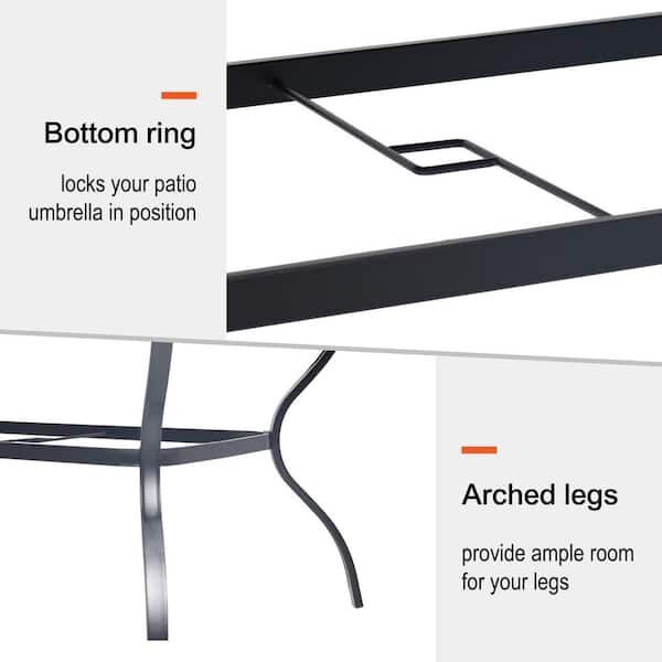 Black Square Metal Outdoor Patio Dining Table with Umbrella Hole