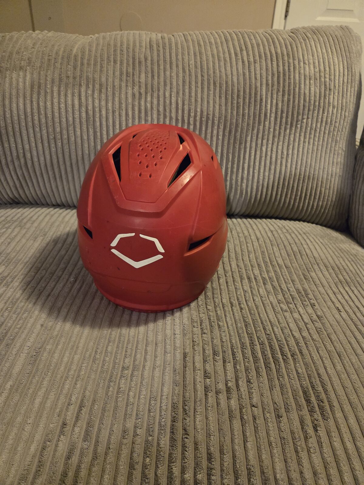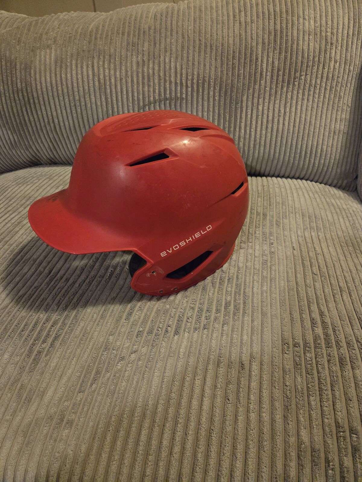VenmoEvoshield batting helmet. Size adult sm. Red matte with jaw gaurd (right handed batter). Used 1 year